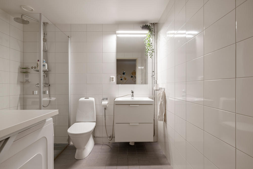 · Praktisk och energieffektiv belysning: Båda badrum har stilrena spotlights och samtliga lampor i lägenheten kan styras med en huvudströmbrytare vid ingången. Det blir enkelt att släcka hela hemmet med ett enda tryck – både smart, energisnålt och bekvämt.