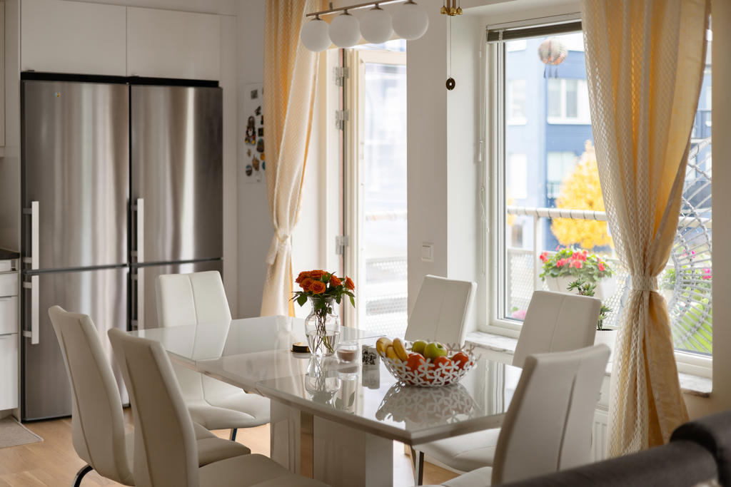 Balkongerna är designade för optimal korsventilation – en behaglig bris genomströmmar hemmet under större delen av året. FTX-ventilation med värmeåtervinning säkerställer frisk luft året om. Modern byggteknik och effektiv ljudisolering ger lugn vistelse dag och natt. Hörnläget med endast en vägg mot grannlägenheten säkerställer att barnen kan röra sig fritt utan att störa grannar.