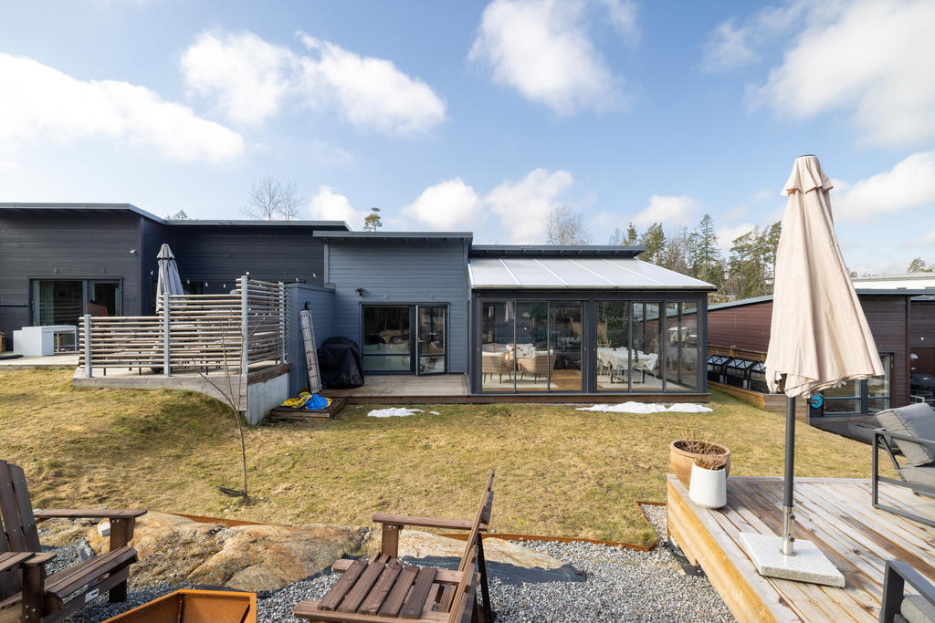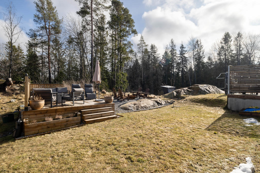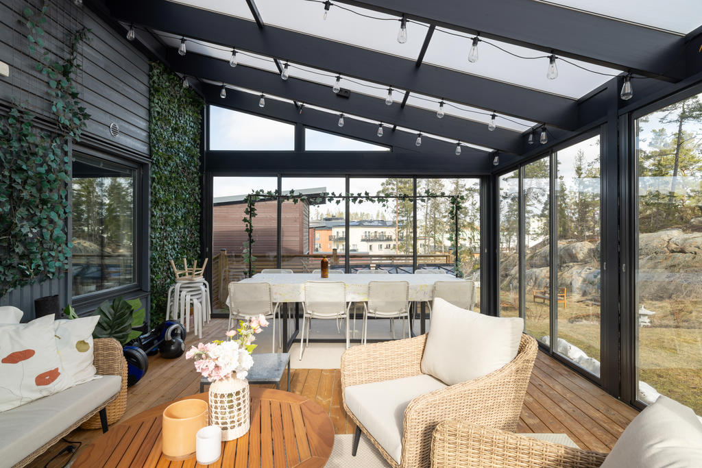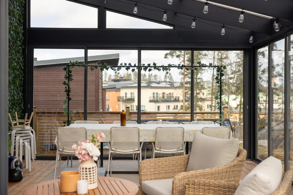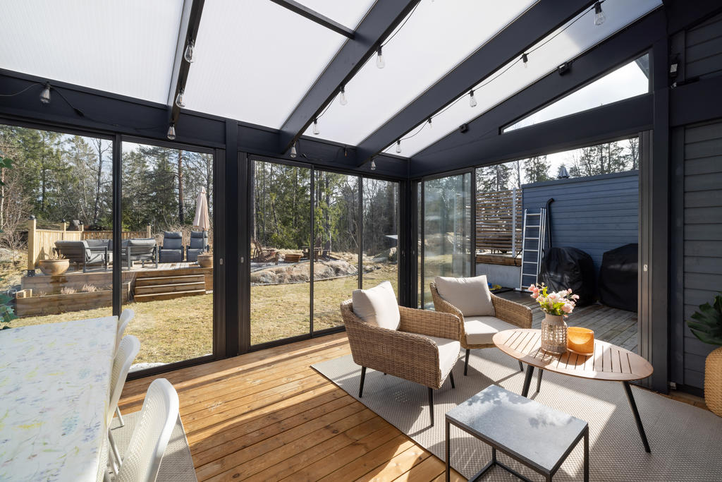 Som en extra bonus finns även ett generöst uterum om cirka 25 kvm som förlänger säsongen och ger ytterligare plats för umgänge och avkoppling. Här kan du njuta av ljuset och trädgårdskänslan från tidig vår till sen höst – perfekt för middagar, sociala stunder eller en lugn stund med en bok.