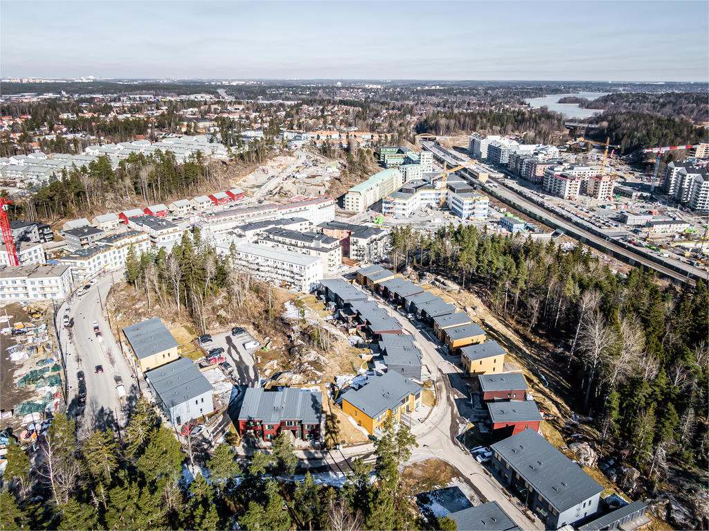 Närområdet erbjuder allt man som barnfamilj kan tänkas behöva. Här finns fantastiska grönområden, naturreservat och badplats. Med den nya Vegastaden kommer en ny stadsdel byggas upp. Här står den nya pendeltågsstationen Vega klar där pendeltåget tar dig smidigt och snabbt till Stockholm City. Vid stationen finns planer på att bygga butiker, större mataffärer mm. I Vegastaden kommer det att finnas flera förskolor och skola. Bra placerade så att du kan lämna barnen på vägen till pendeltåget. Det är även nära till Handen centrum, Port 73 och Länna handelsplats. Resan med bil in till Stockholm City tar ca 20 minuter.