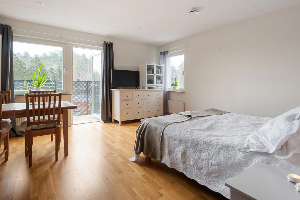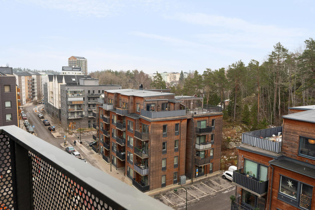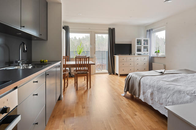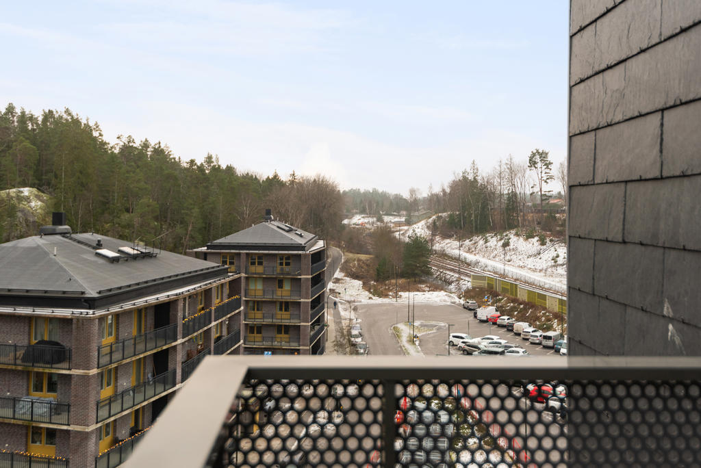 Välplanerad etta högst upp i huset med balkong och härlig utsikt – I populära Vega!