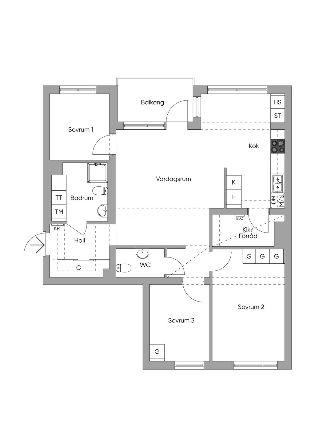 Fyrarumslägenhet med två badrum