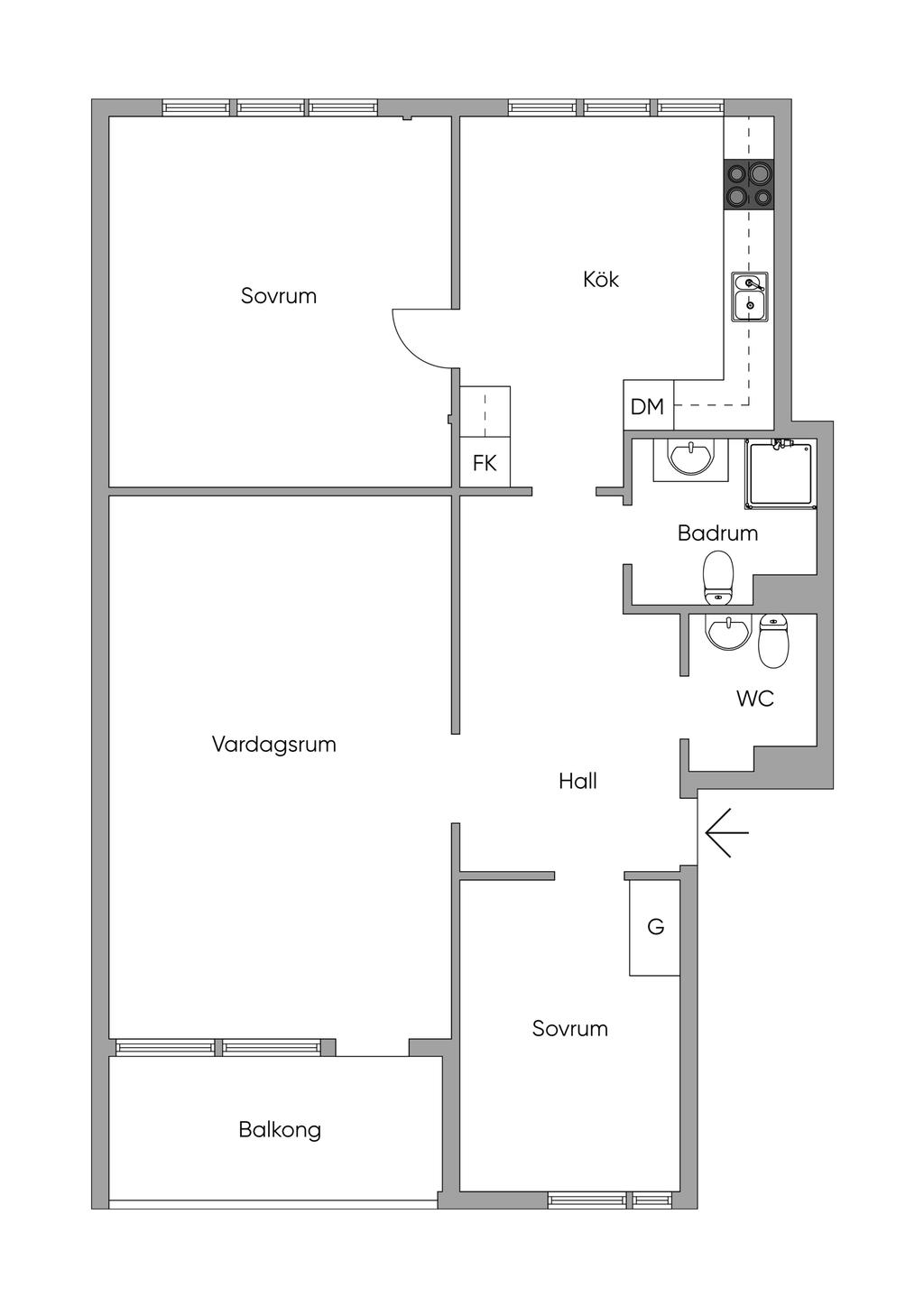 Välplanerad och ljus 3:a med stor balkong, två badrum och utmärkt förvaring