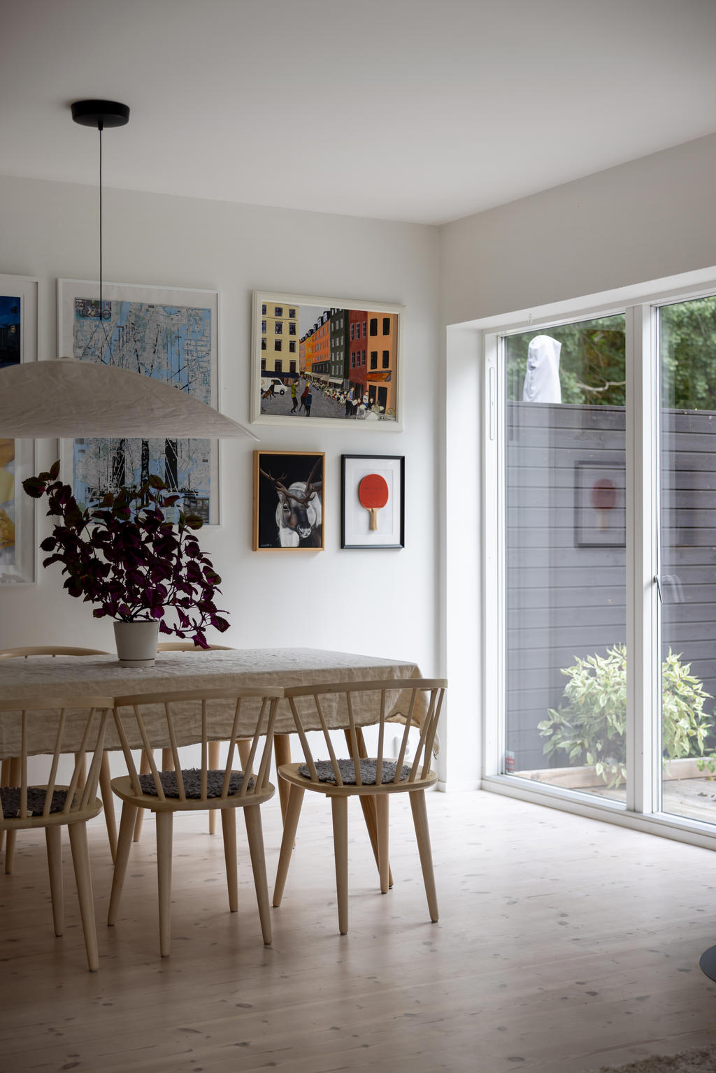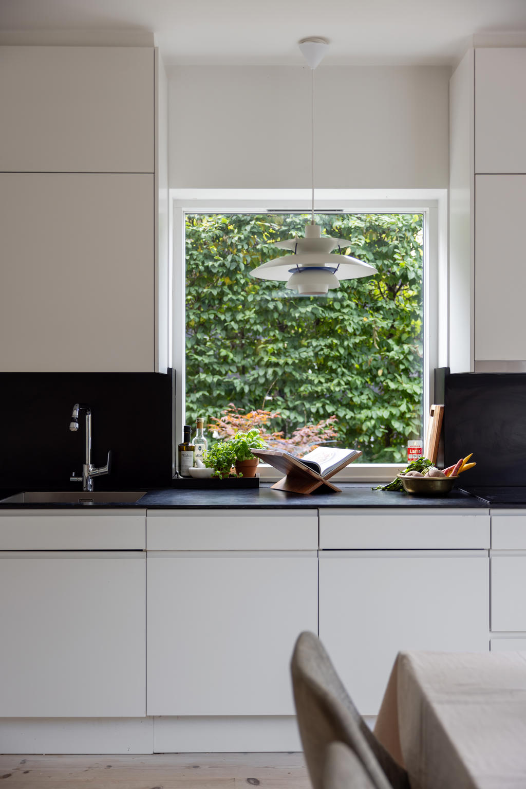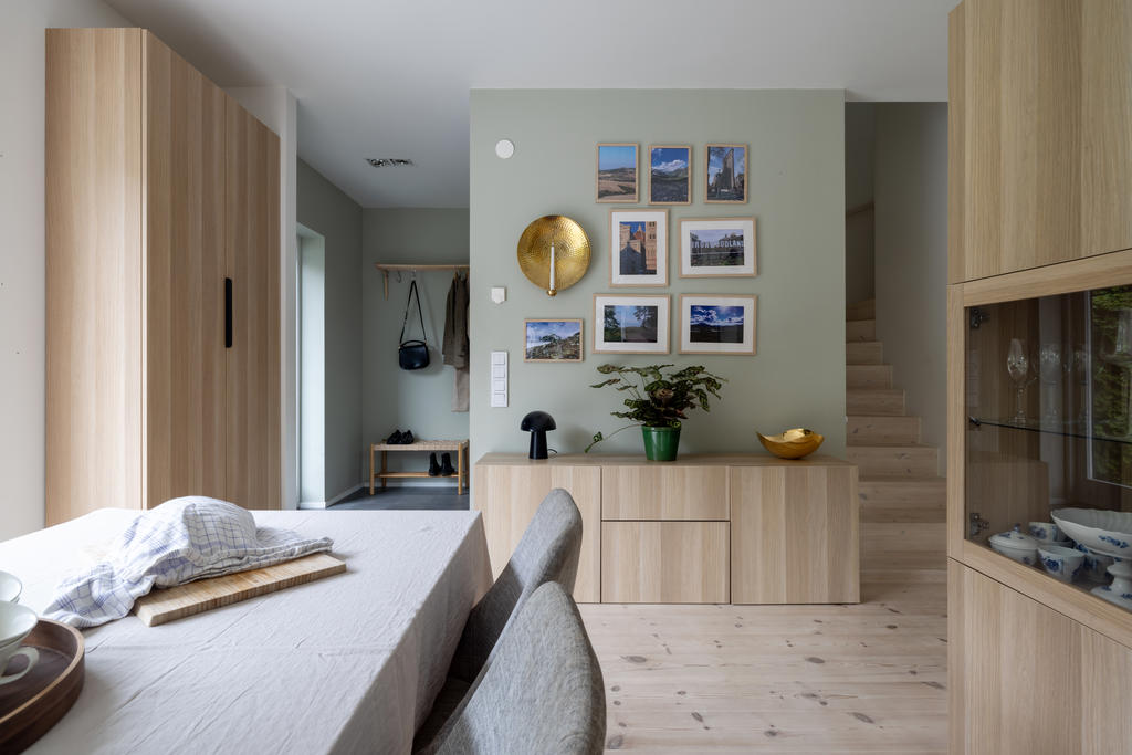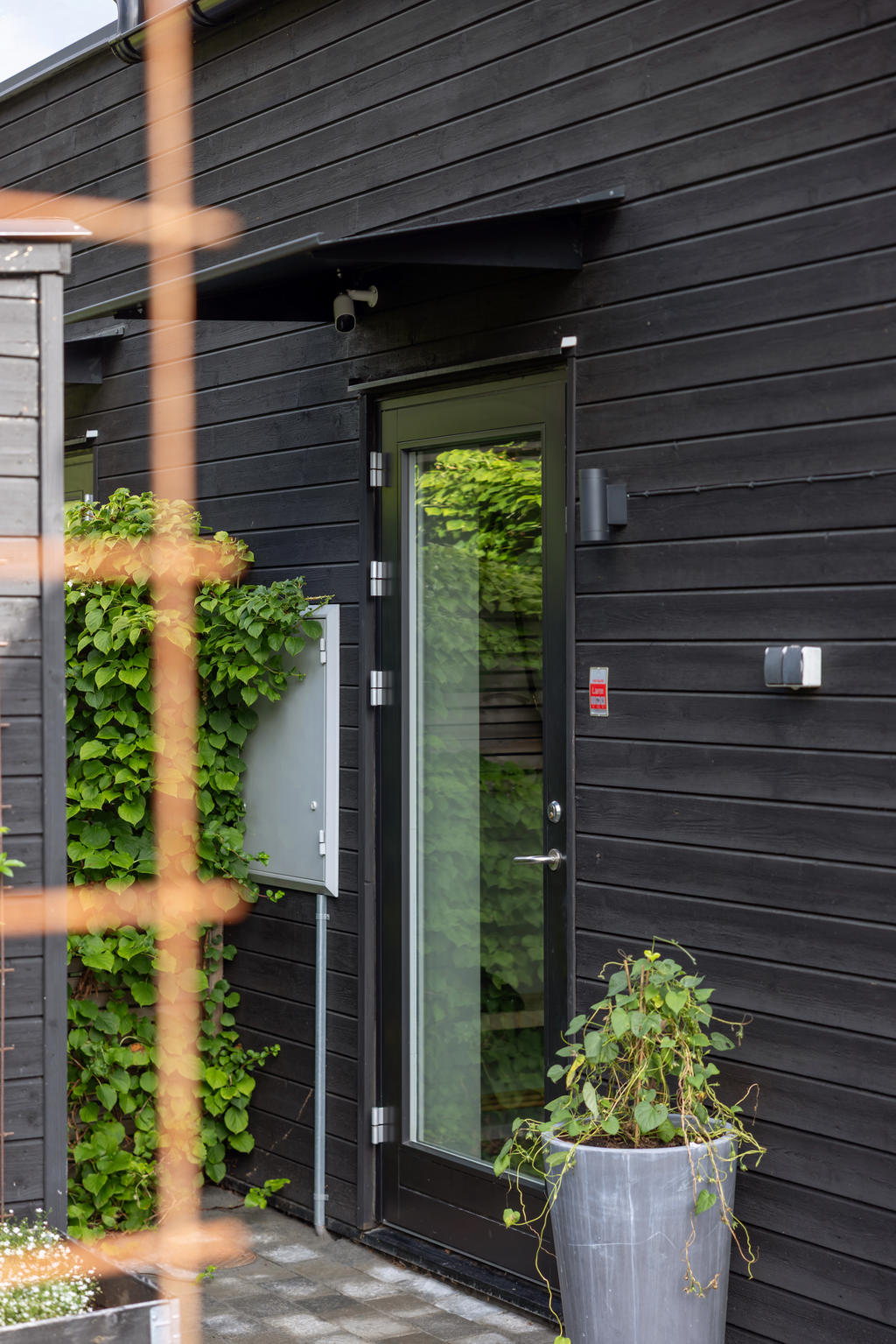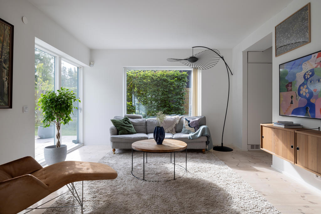 "Det vi fastnade för direkt med huset var ljuset och rymden. Högt i tak, stora fönster och en känsla av att ute och inne hänger ihop. Det märks i vardagen och gör att huset känns större än det är. Sällskapsytorna på nedre plan har varit den självklara samlingspunkten för både familjeliv och umgänge, och kontoret med sitt stora fönster mot skogen är en plats där det är lätt att trivas och komma till ro. En annan sak vi verkligen uppskattat är hur okomplicerat allt är. Huset är nytt och genomtänkt, utan konstigheter. Enkel förvaring, eluttag och belysning sitter där man faktiskt vill ha dem och inget har känts som tillfälliga lösningar.