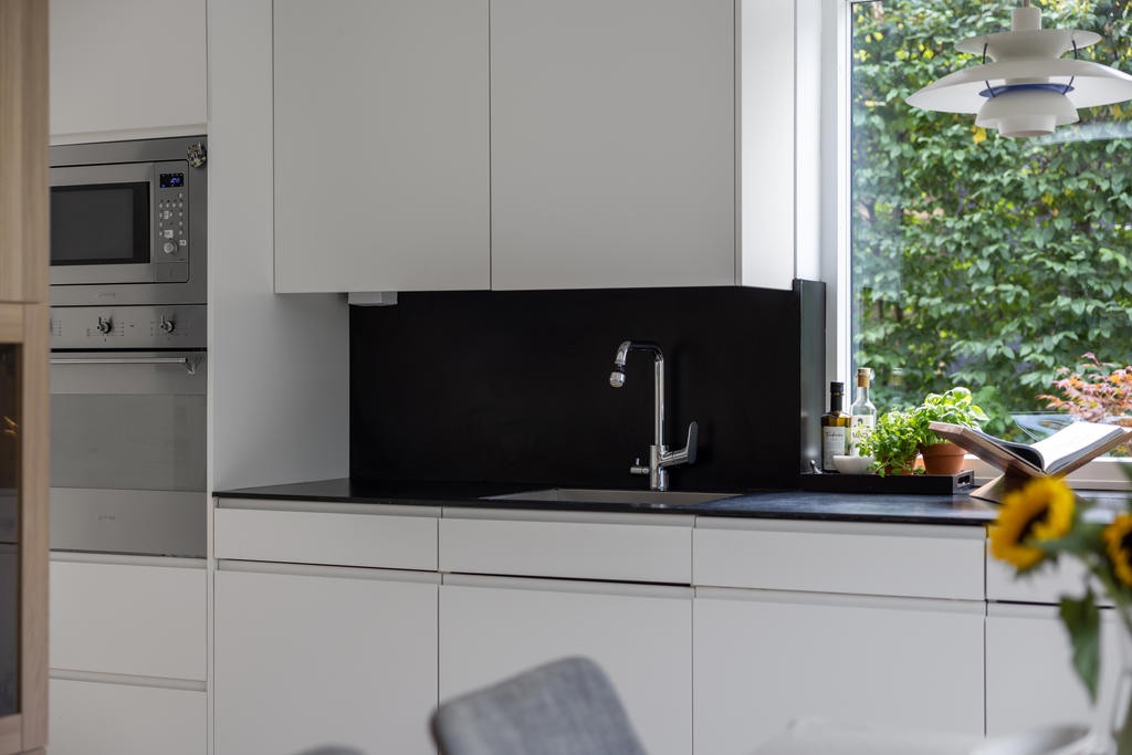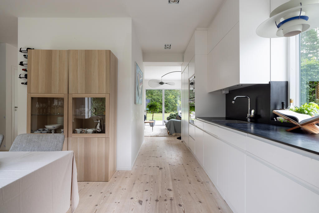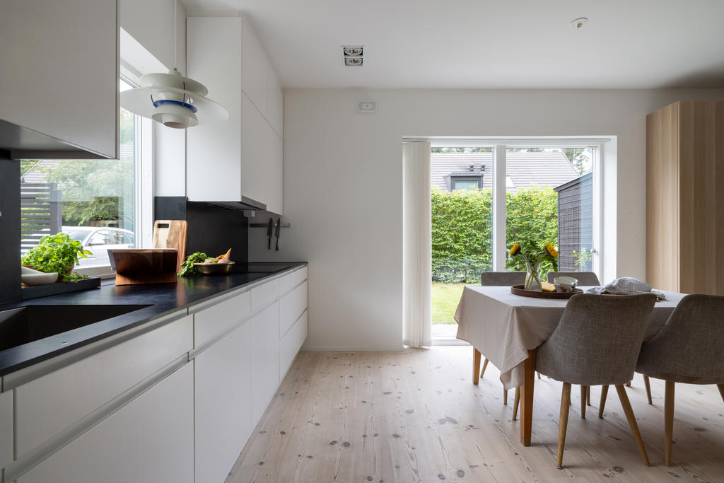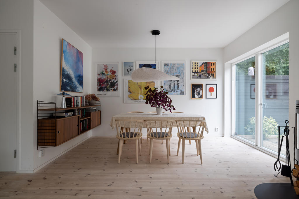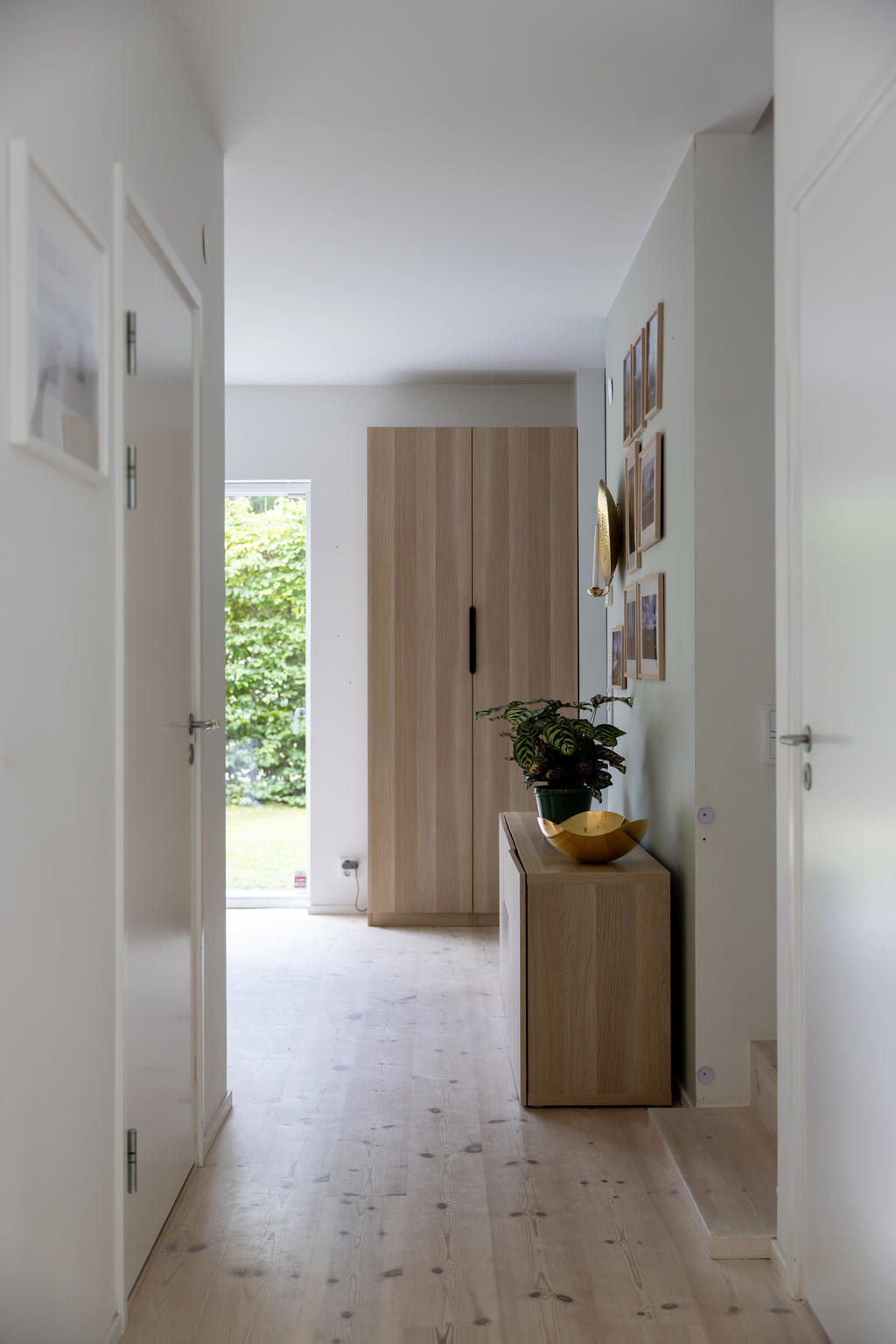 "Det vi fastnade för direkt med huset var ljuset och rymden. Högt i tak, stora fönster och en känsla av att ute och inne hänger ihop. Det märks i vardagen och gör att huset känns större än det är. Sällskapsytorna på nedre plan har varit den självklara samlingspunkten för både familjeliv och umgänge, och kontoret med sitt stora fönster mot skogen är en plats där det är lätt att trivas och komma till ro. En annan sak vi verkligen uppskattat är hur okomplicerat allt är. Huset är nytt och genomtänkt, utan konstigheter. Enkel förvaring, eluttag och belysning sitter där man faktiskt vill ha dem och inget har känts som tillfälliga lösningar.