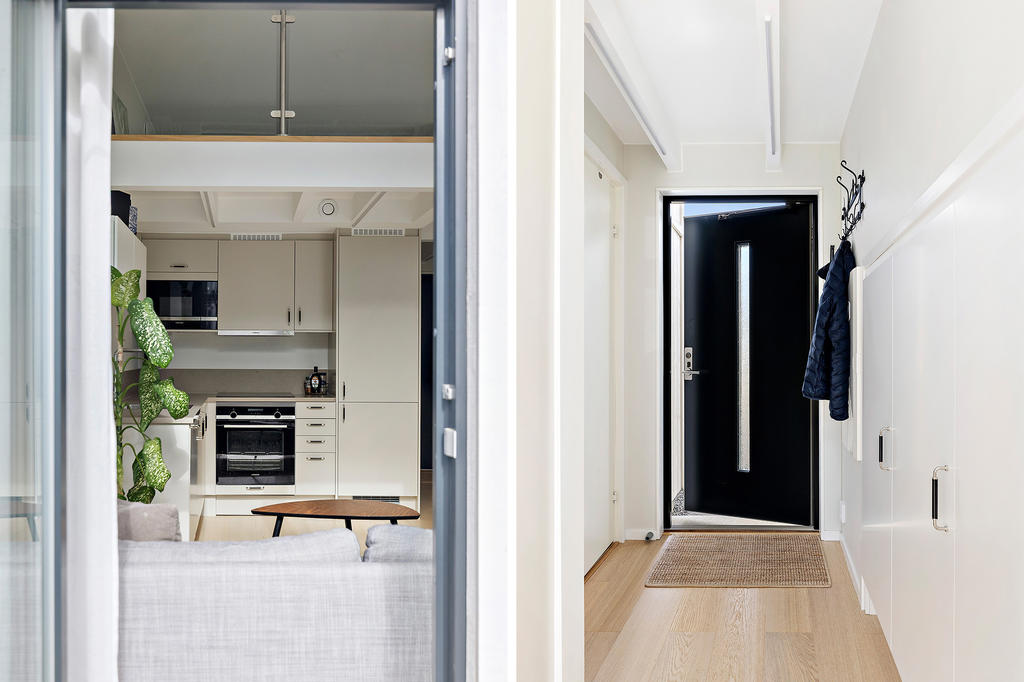 Ljust och stilrent ateljéhus med genomgående hög standard! Egen uteplats, förråd och p-plats.