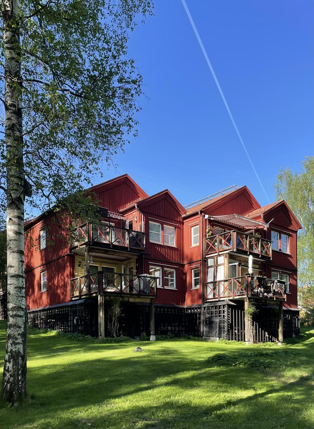 3-4 rok med stor balkong. Lugnt och naturskönt beläget intill sjön Trehörningen m fina promenadstråk