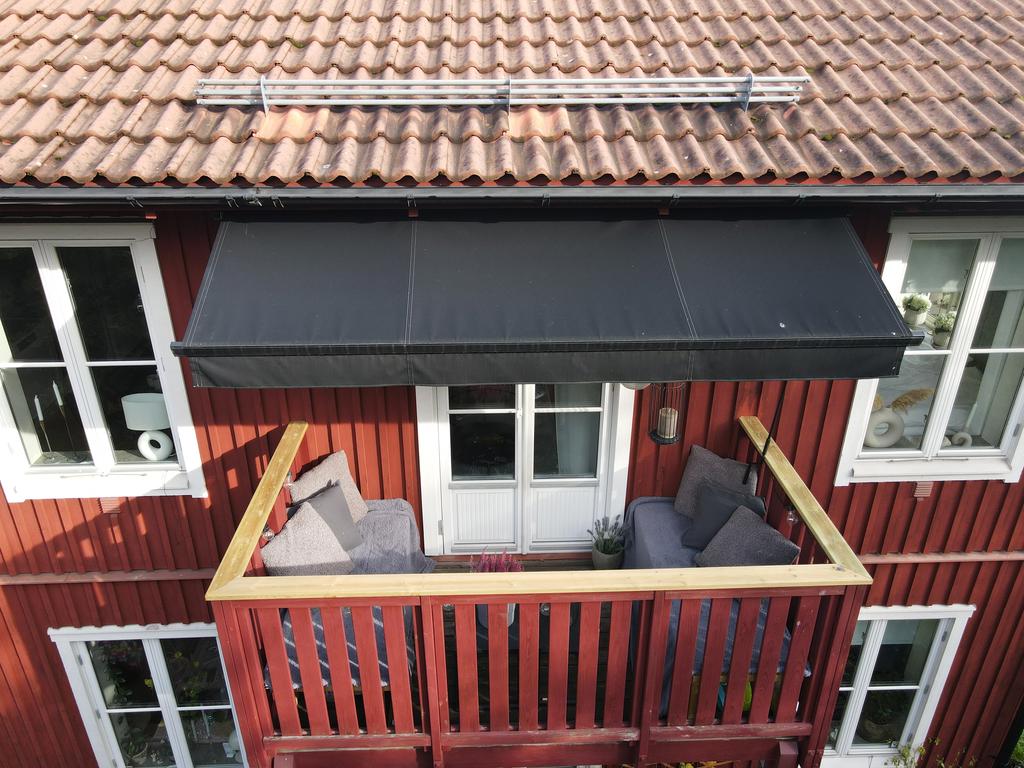 Från vardagsrummet når du den insynsskyddade balkongen i helt rätt solläge. Här kan du njuta av dagens alla stunder – från morgonens första solstrålar till kvällens gyllene sken – en perfekt plats för kaffekoppen, middagen eller en lugn stund med en bok.