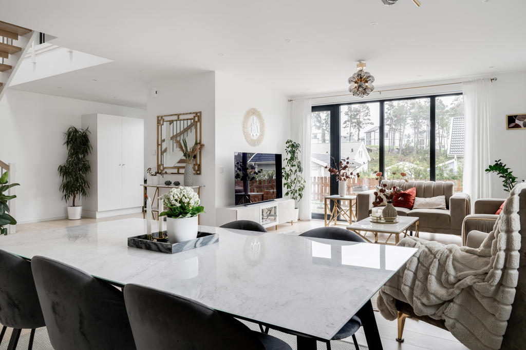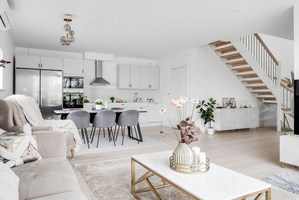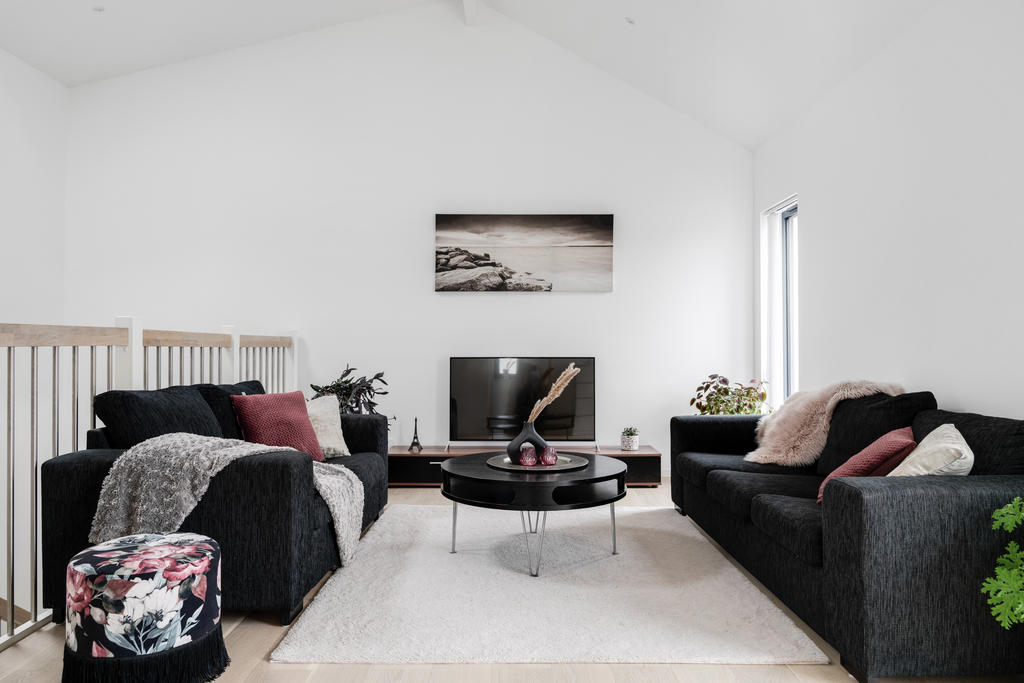 Modernt parhus med 134 kvm, 2 våningar, nära natur och service, endast 20 minuter från stan!