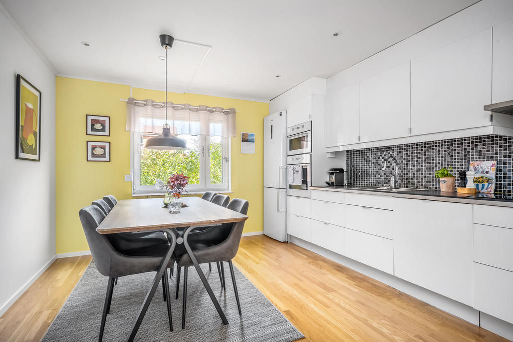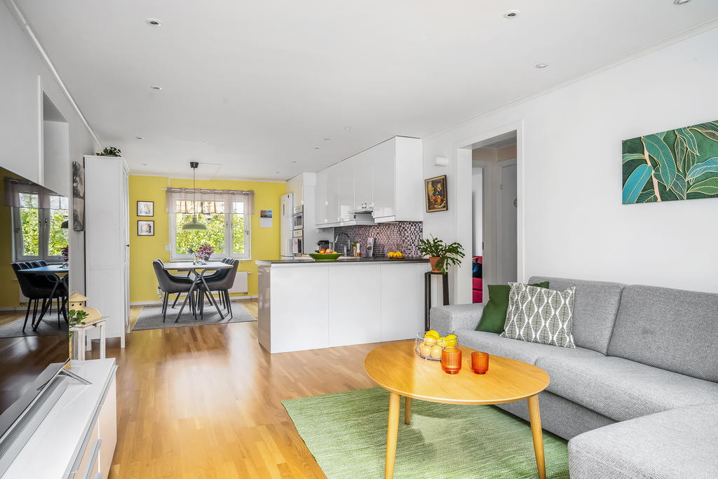 Här möts du av en modern och smakfullt renoverad bostad där varje detalj är noga genomtänkt. Den öppna planlösningen mellan kök och vardagsrum skapar ett luftigt och socialt hem som passar perfekt för både vardagsliv och umgänge.