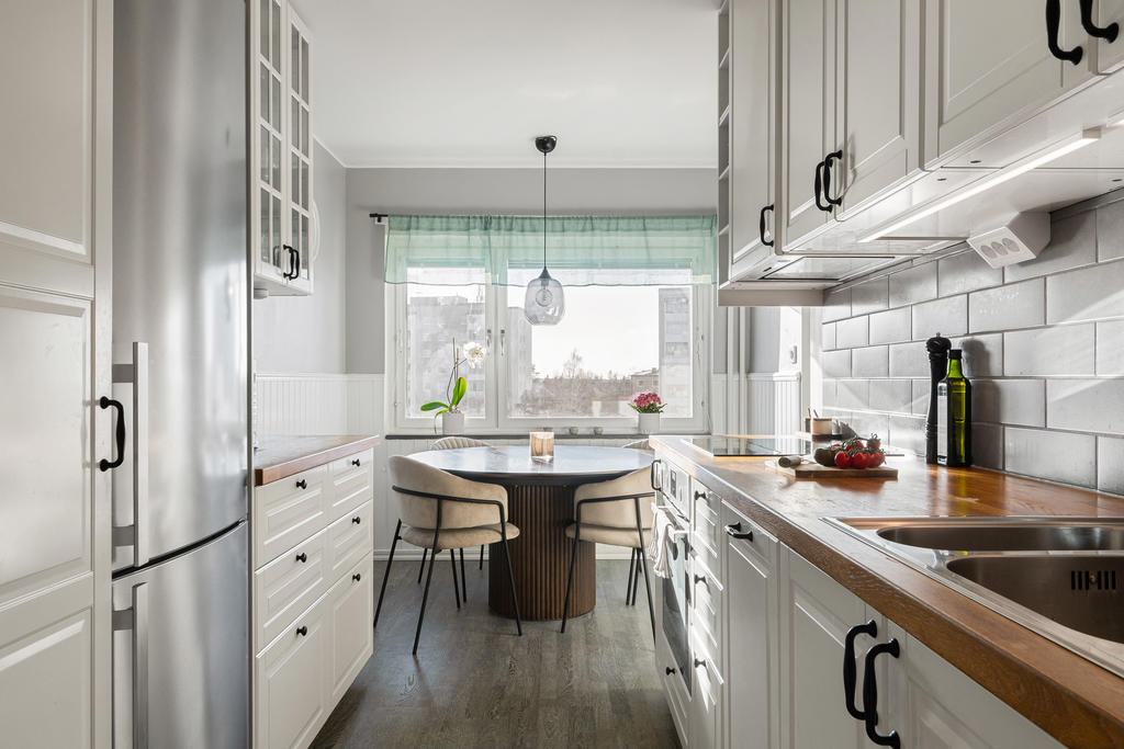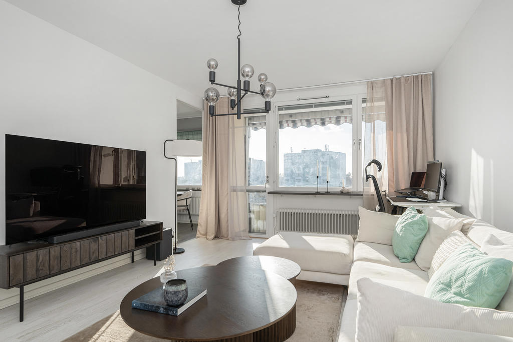 Högt belägen och stilfull tvåa med gavelläge, kvällssol och milsvid utsikt