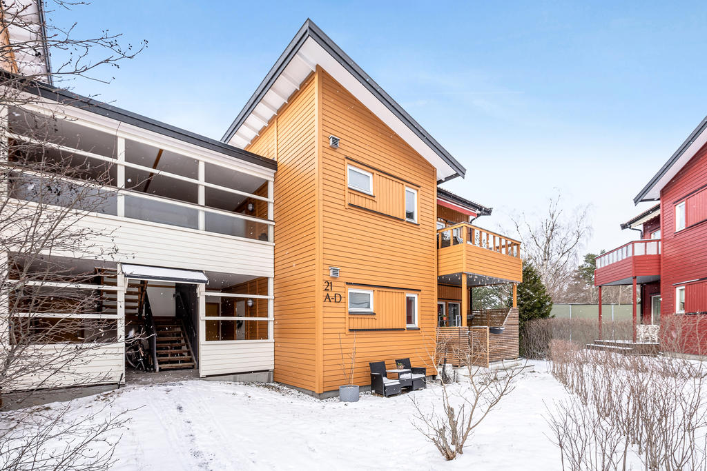 Till bostaden hör ett rymligt och isolerat förråd som ligger i direkt anslutning till lägenheten. Här har du plats för cyklar, fritidsutrustning och trädgårdsredskap. På Finserudsgränd bor du med en härlig radhuskänsla i ett lugnt och trivsamt område, omgivet av fina promenadstråk och motionsslingor.