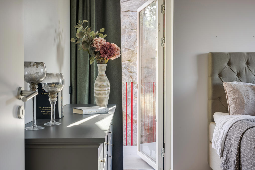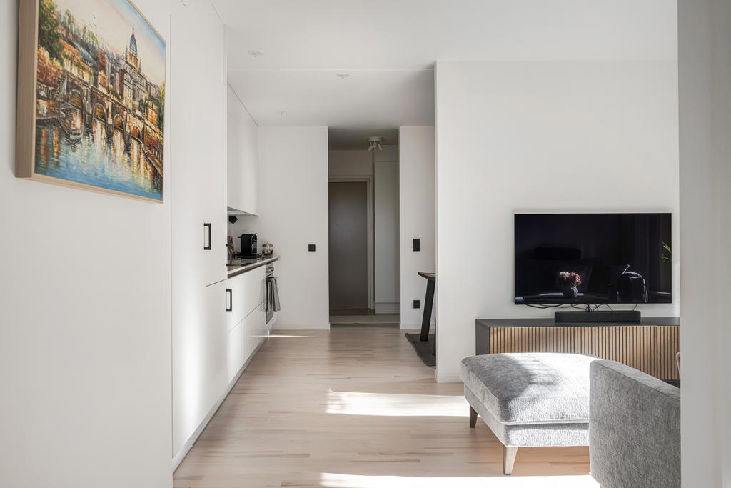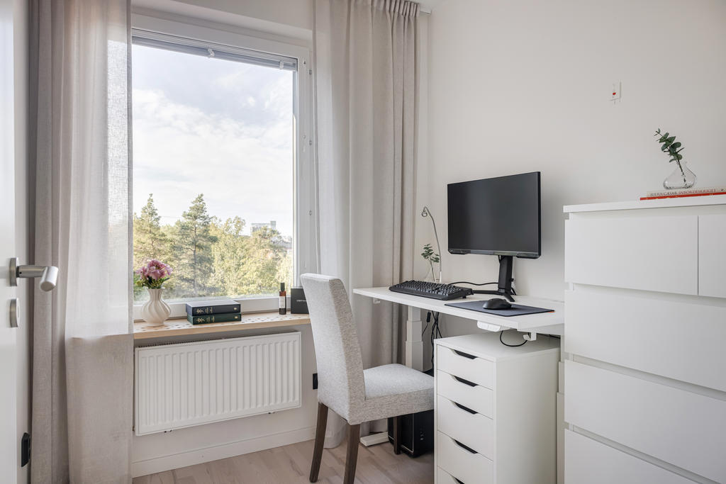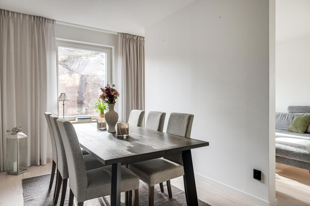 Denna bostad har allt ett modernt boende kräver såsom öppen planlösning mellan kök och vardagsrum, matsal, välutrustat kök samt ett stort badrum utrustat med kombimaskin. Sovrummen ligger med fönster i västerläge och erbjuder utsikt in mot stan och en glimt av Stockholms inlopp.