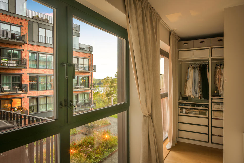 Nu erbjuds äntligen en möjlighet att förvärva denna väldigt trevligare och sjönära trerummare belägen mitt i hjärtat av Nacka Strand. Underbar sjöutsikt över Stockholms inlopp kombinerat med påkostade detaljer gör detta till ett boende man inte vill missa. Lägenheten genomsyras av en stor och trevlig balkong med utsikt mot Stockholms inlopp, öppna sociala ytor, ljusa ytskikt och enorma fönsterpartier som bjuder på en fantastisk utsikt över Saltsjön. Bostaden är väldigt social där vardagsrum, kök och balkong flyter ihop och bildar en social mittpunkt. Lägenheter består av totalt två sovrum där det stora sovrummet dessutom har en anslutande klädkammare. Det mindre sovrummet rymmer både säng samt övrigt möblemang. Badrummet är otroligt snyggt och påkostat. Badrummet är utrustat med kakel och klinker i natursten, wc, dusch, tvättmaskin och torktumlare.