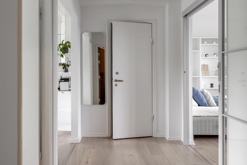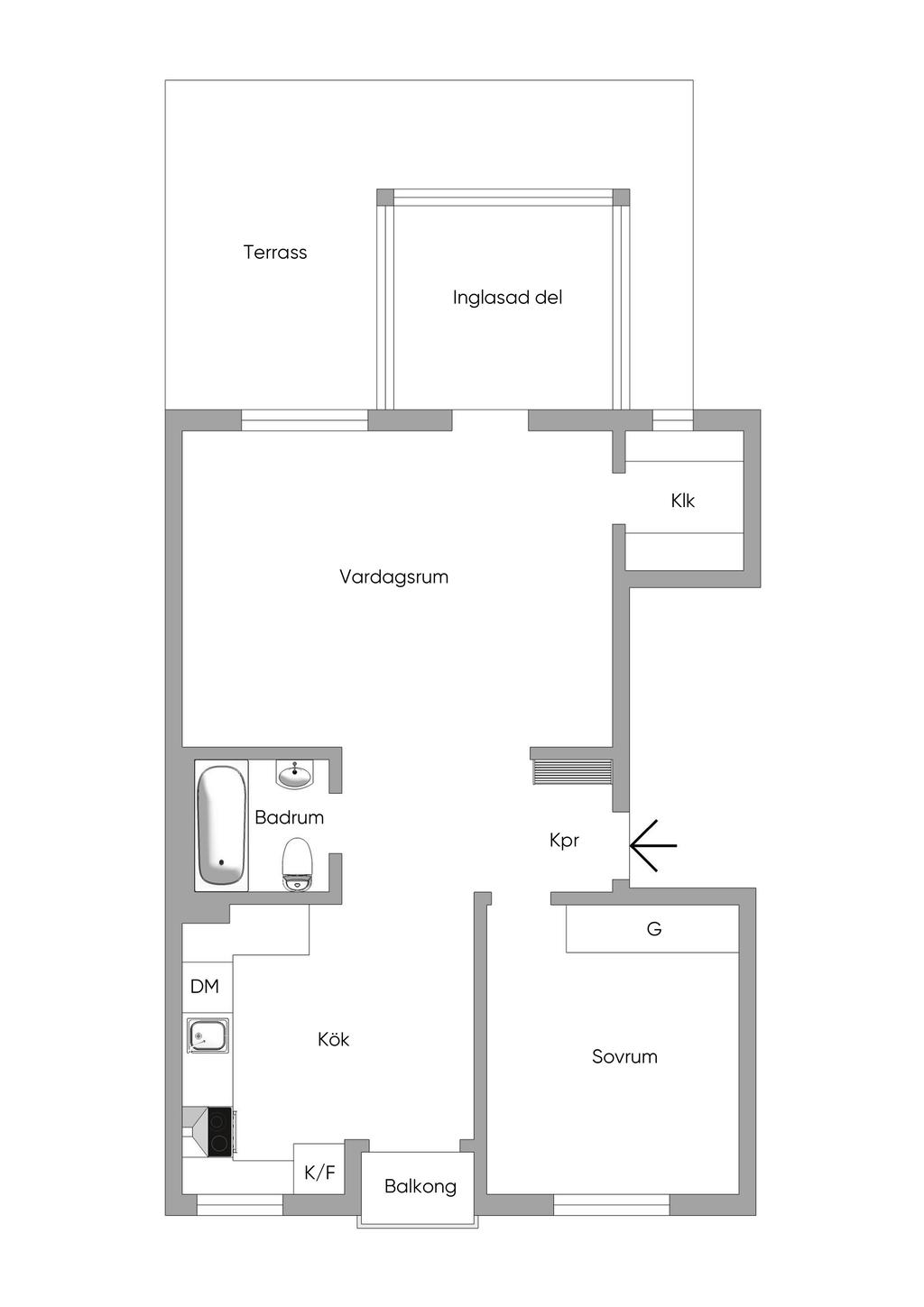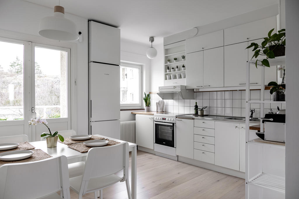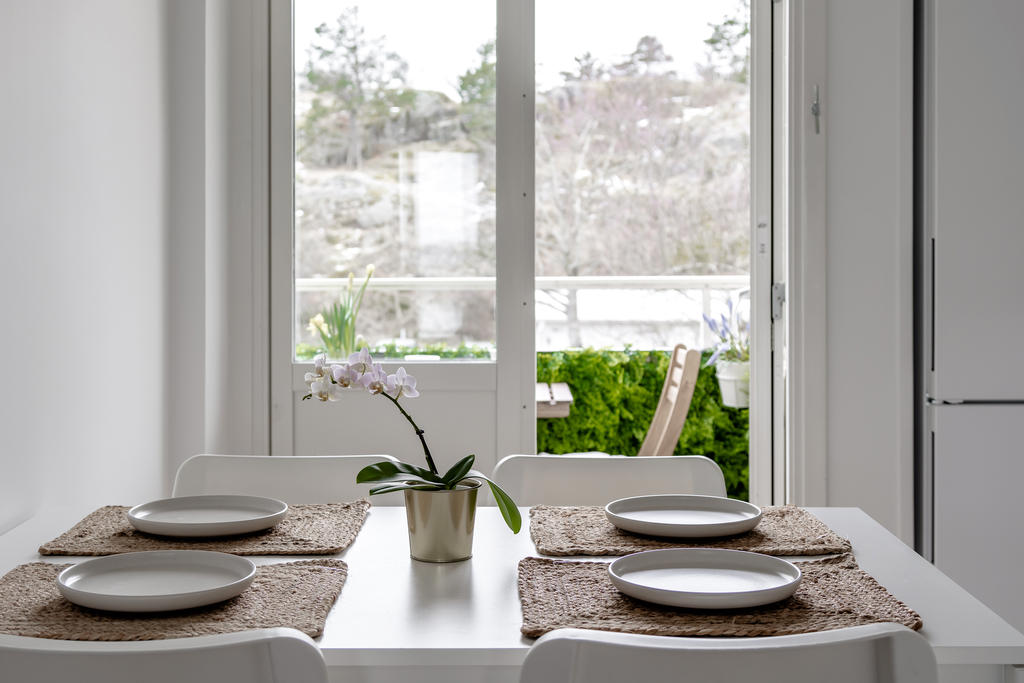 Då lägenheten är genomgående med fönster i två väderstreck släpps det in ordentligt med ljus i hela lägenheten. I det rymliga köket finns plats för matgrupp för 4-6 personer samt stora arbetsytor för matlagning. Här når man även lägenhetens soliga balkong belägen i sydväst.