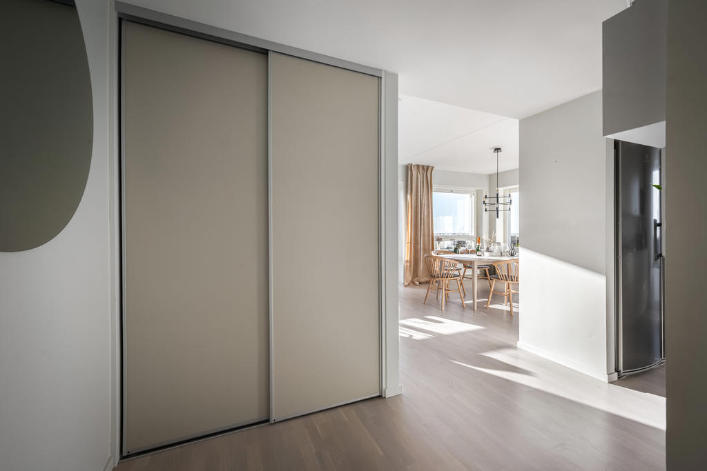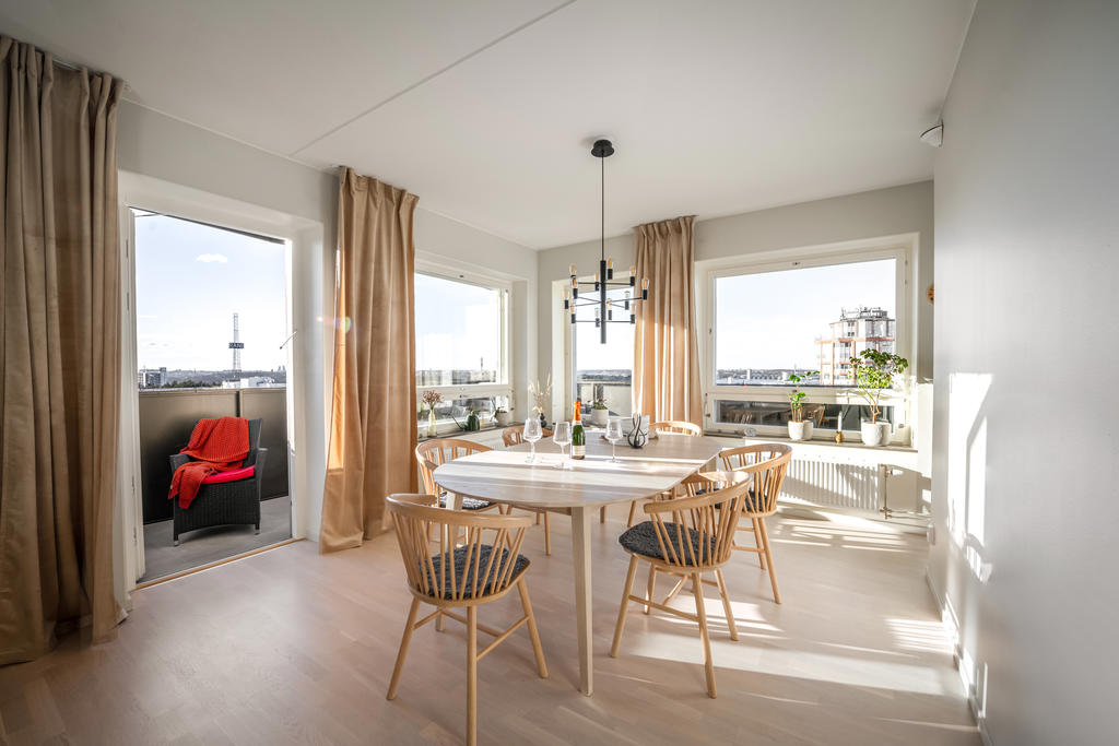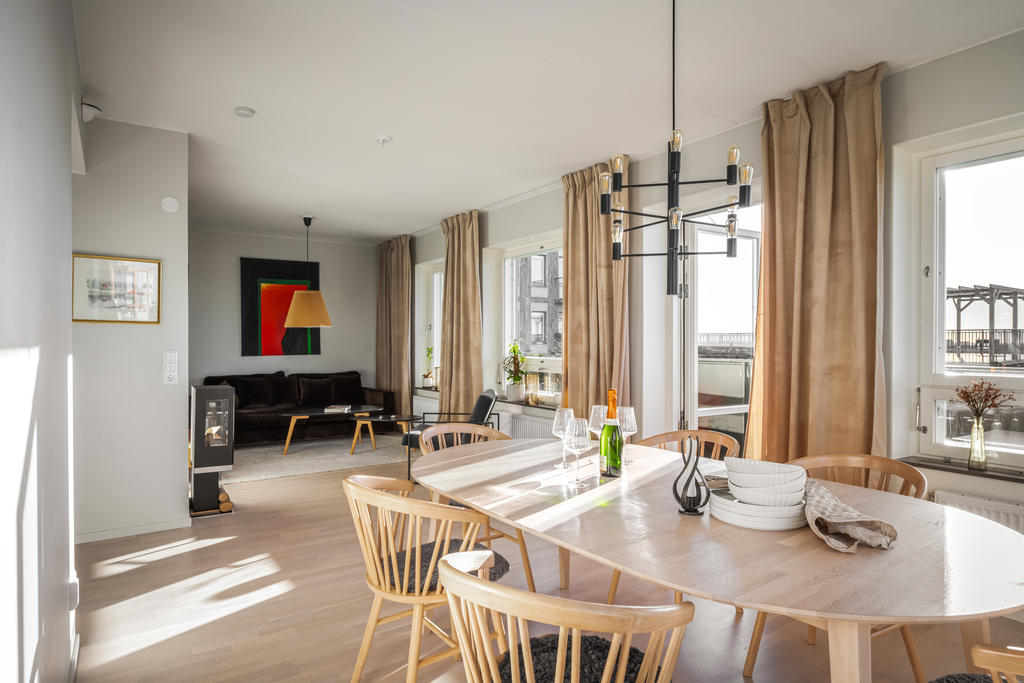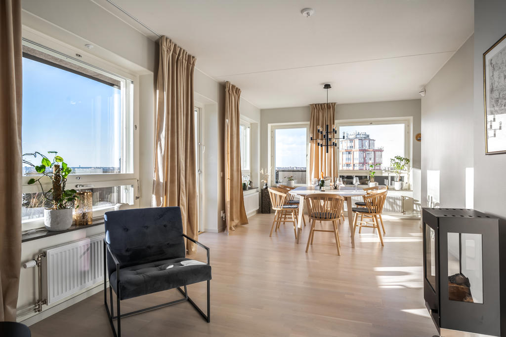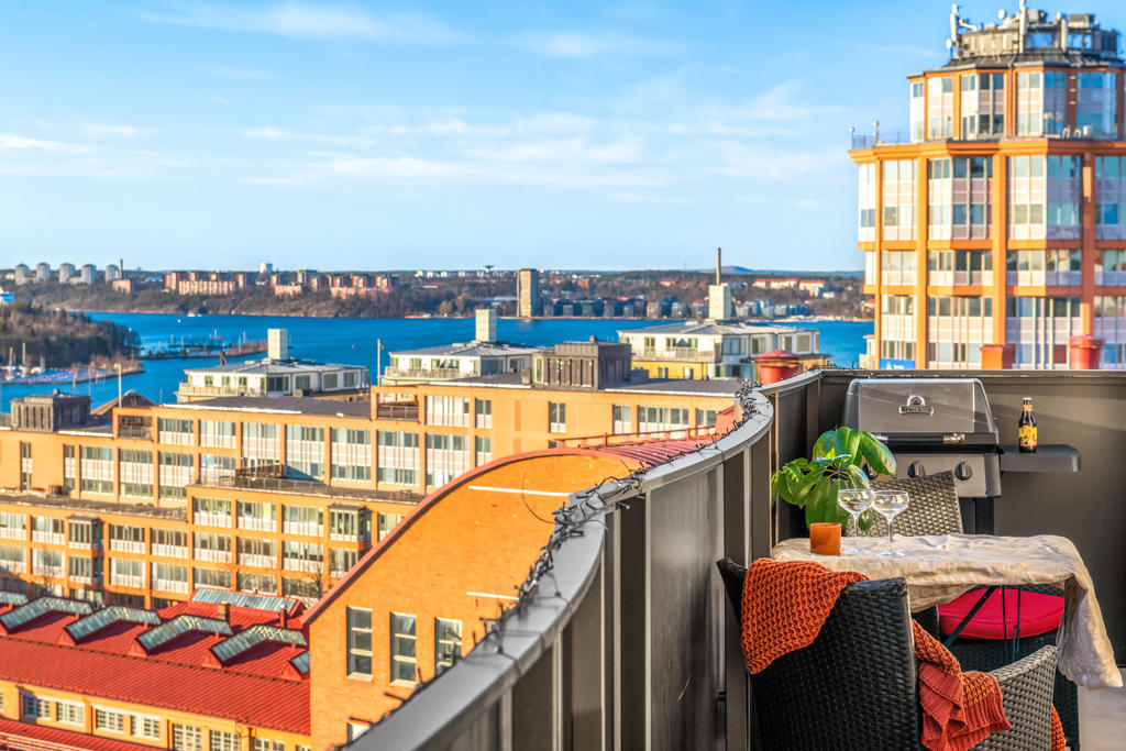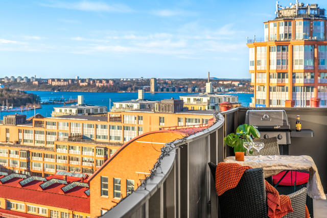 Direkt i lägenheten slås du av den underbara utsikten över Stockholms inlopp och stadens siluett i bakgrunden. Ett fantastik läge för den som har väldigt höga krav på sitt boende. En stor balkong löper längs med hela lägenheten vilket skapar en otrolig frihetskänsla.