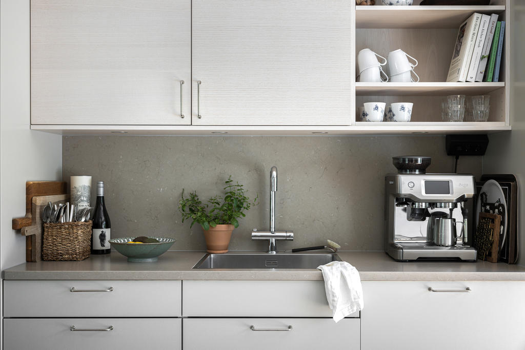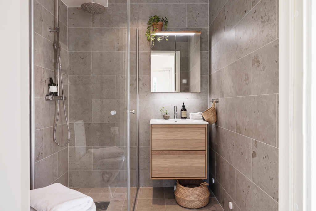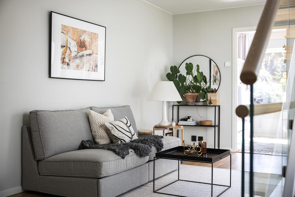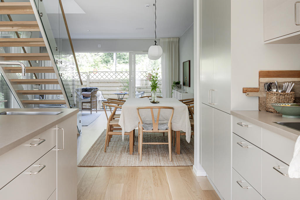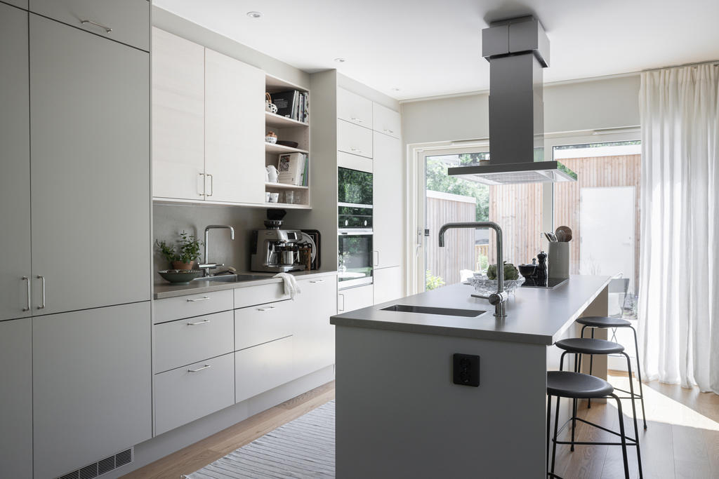 Huset består av totalt 5 rum och två badrum fördelat på två plan. På entréplan finner man ett luftigt och väl tilltaget vardagsrum som flyter ihop med köket och bildar en social mittpunkt. Från vardagsrummet når man totalt två uteplatser, den ena på baksidan samt en på gaveln. Köket är påkostat med exklusiva och sobra materialval som exempelvis bänkskiva och stänkskydd i snygg och ljus sten. Den trevliga köksön skapar ännu mer arbetsyta. Från köket når man enkelt en stenlagd uteplats där man med fördel kan avnjuta frukost och lunch tack vare det trevliga solläget. En trappa upp finner man samtliga sovrummen, ett mindre allrum samt ett väl tilltaget badrum utrustat med badkar. Bägge badrummen är även de påkostade med exklusiva materialval som exempelvis Norrvange kakel och klinker från Bricmate.