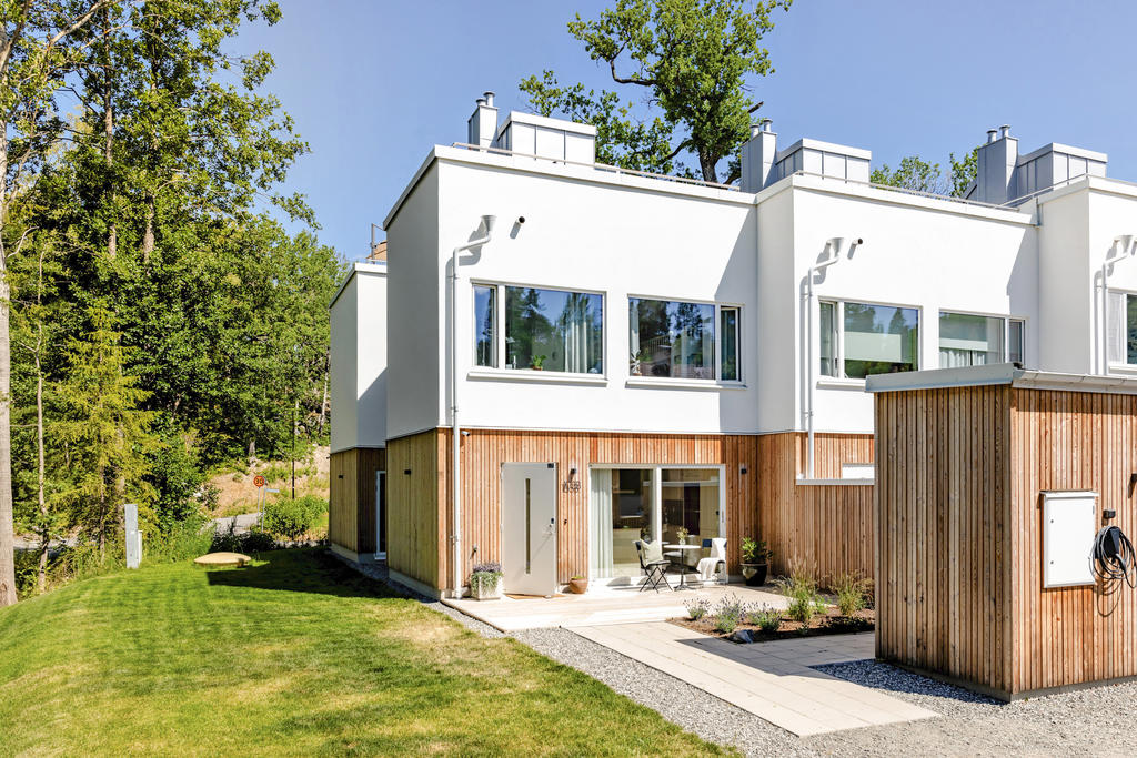 Nu erbjuds detta fantastiska gavelradhus till försäljning. Huset genomsyras av stora öppna ytor kombinerat med stora fönsterpartier som skapar ett fantastiskt ljusinsläpp. Tack vare sitt fördelaktiga gavelläge får man här extra stor tomt, bättre parkeringsmöjligheter, skyddat läge, fler fönster, mer ljusinsläpp mm. Solläget är optimalt med sol hela dagen. Tack vare flertalet terrasser, uteplatser mm. så finns chans att när som helst välja sol eller skugga, lyxigt!