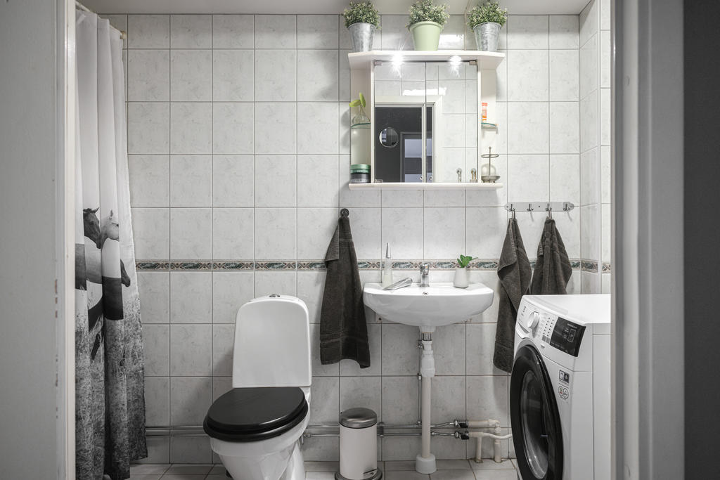 El dragen till badrummet för ny tvättmaskin år 2023.