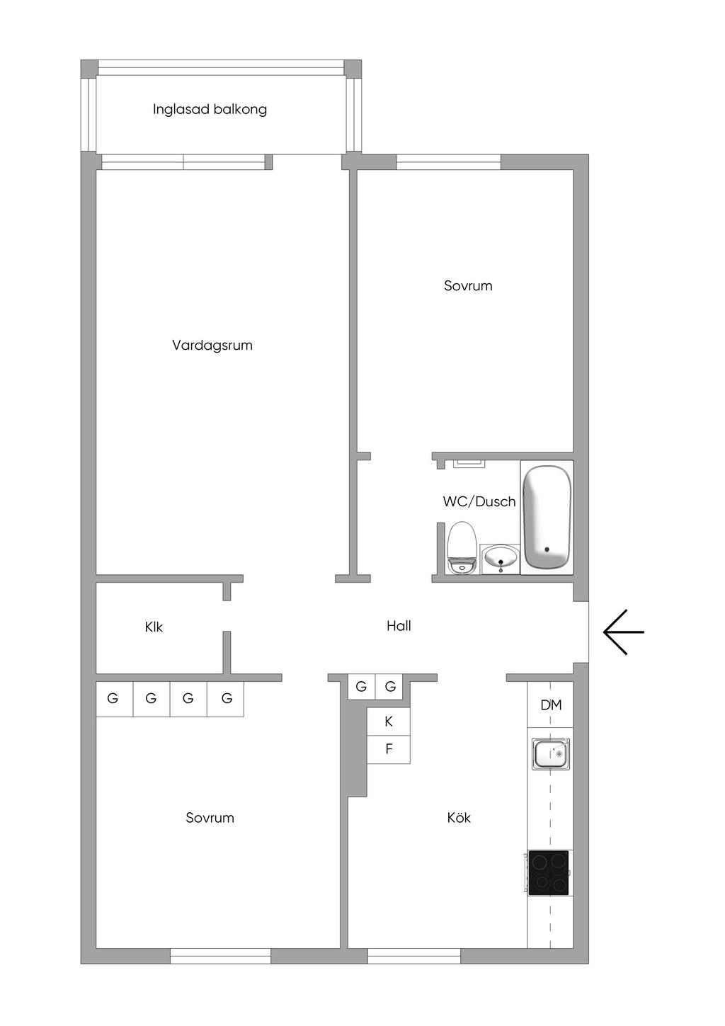 Modern 3 rok med inglasad balkong!