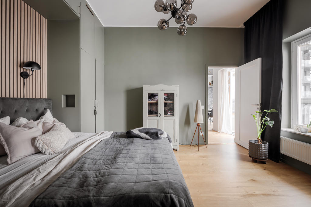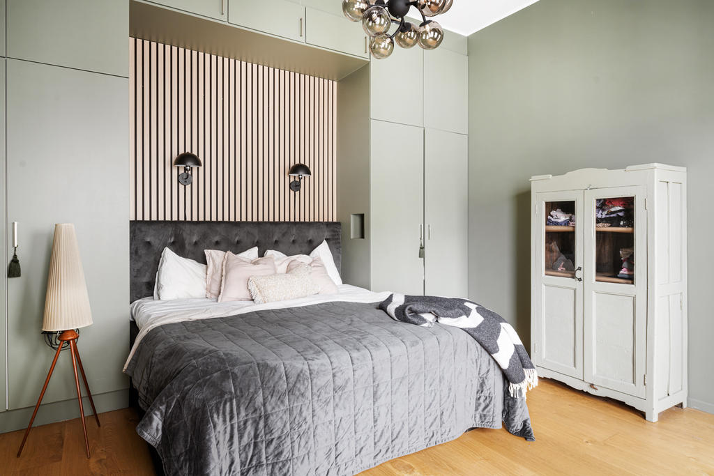 I det stora lyxiga sovrummet finns en platsbyggd garderob som ramar in sängen och skapar bra med förvaringsmöjligheter. Detta rum är stort nog att man skulle kunna dela av till två rum, se alternativ planlösning.
