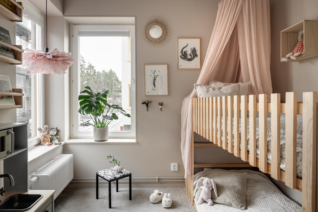 Det mindre rummet intill köket fungerar lika bra som sovrum, arbetsrum eller gästrum.