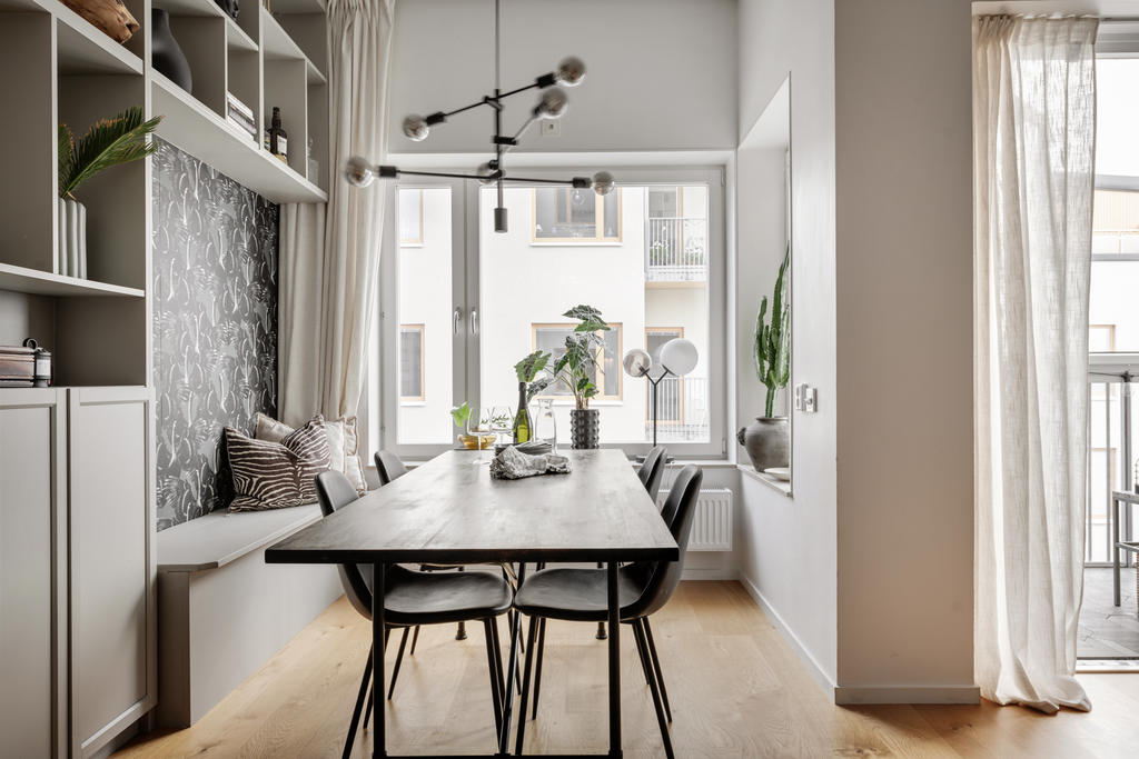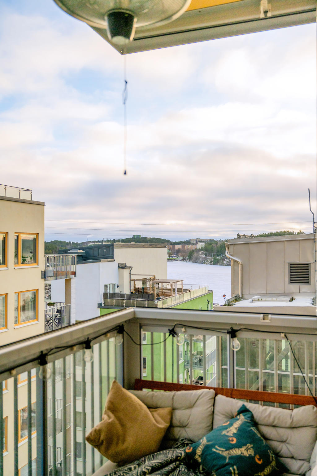 Här bor du modernt och stilrent med hela 3,10m i takhöjd! Vilket är unikt i Tollare. Den öppna planlösningen mellan kök och vardagsrum skapar en social mittpunkt. Från vardagsrummet når du den stora inglasade balkongen som kan nyttjas året runt, oavsett väder.