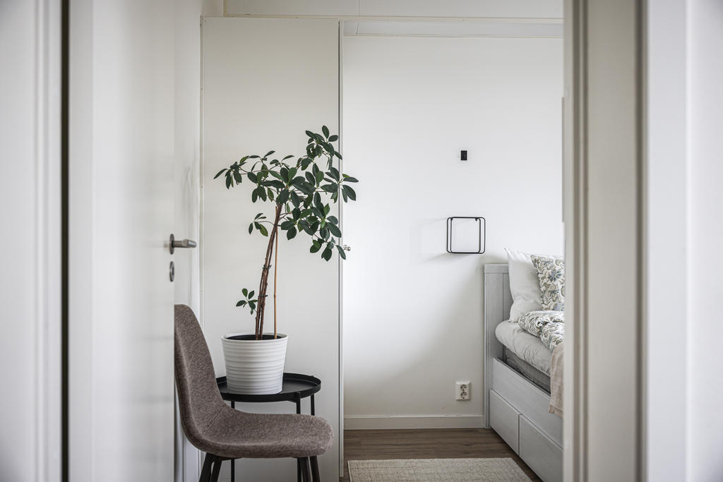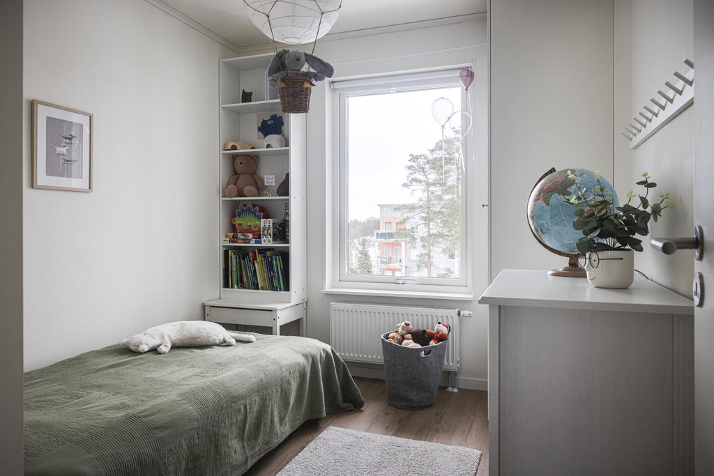 Ljust och flexibelt sovrum med fantastisk utsikt. Rummets storlek möjliggör flera användningsområden och passar lika bra som kontor, barnrum eller gästrum.
