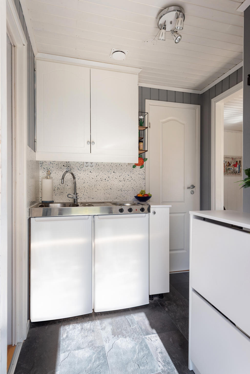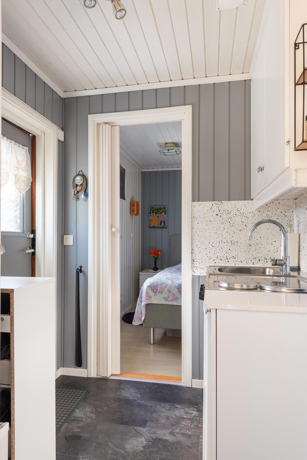 Trivsam brf-stuga mysigt läge nära Bergbybadet vid Väddöviken.