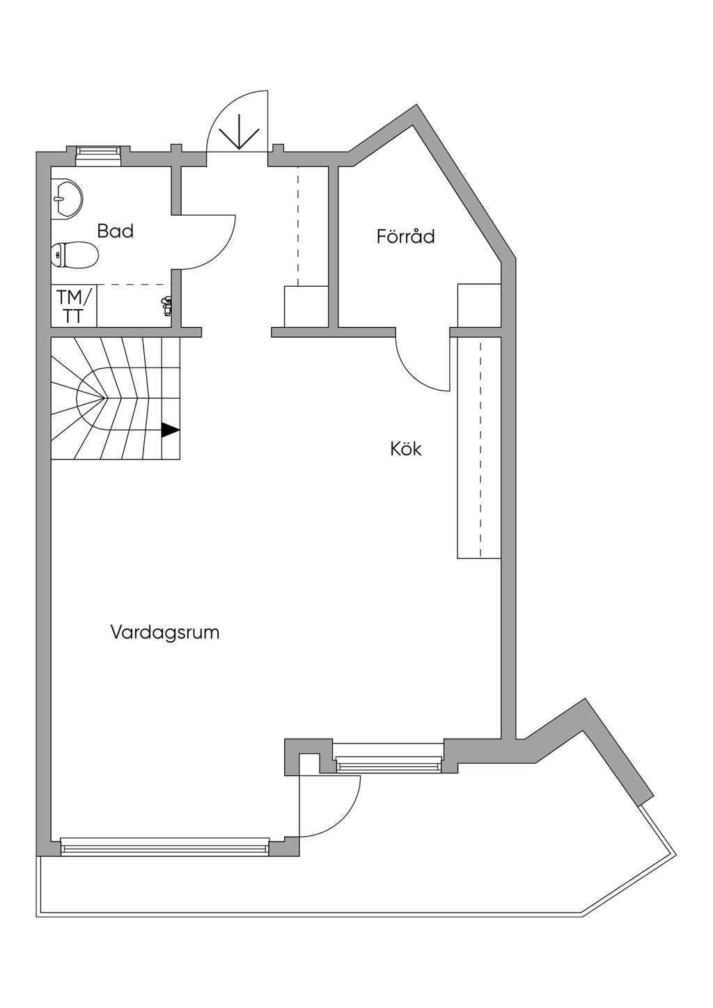 Intill köket finns ett flexibelt förråd som med fördel kan användas som hemmakontor eller en rymlig walk-in closet – en smart bonusyta som höjer vardagskomforten.