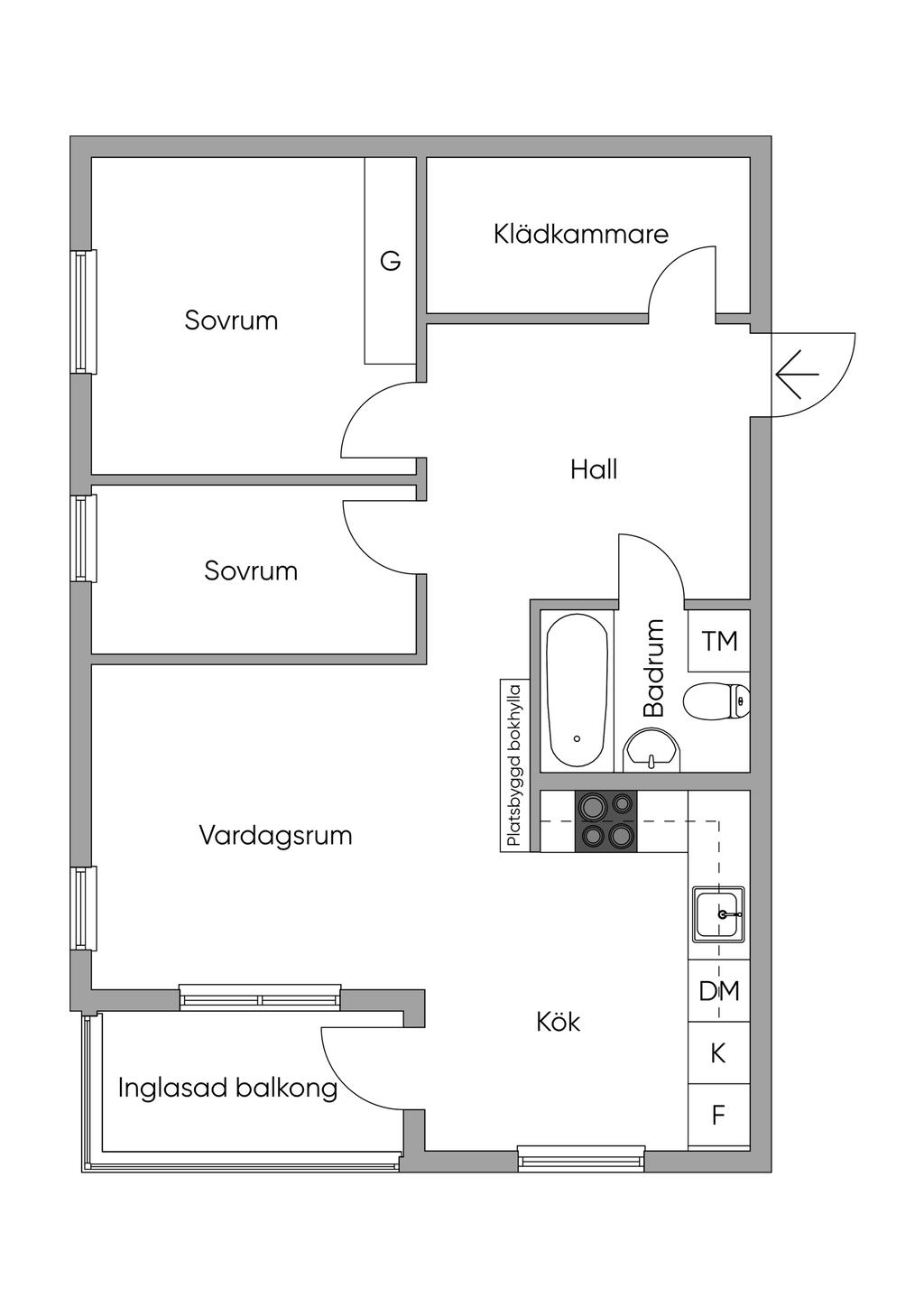Välplanerad 3.a med inglasad balkong och stor klädkammare