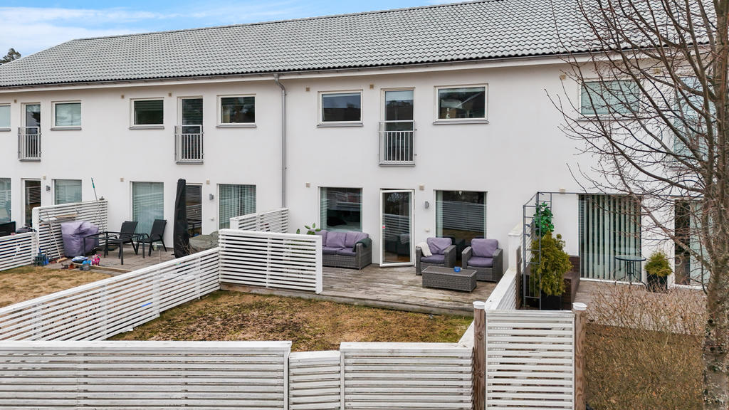 Modernt bostadsrättsradhus i två plan fördelat på fyra rum och kök!