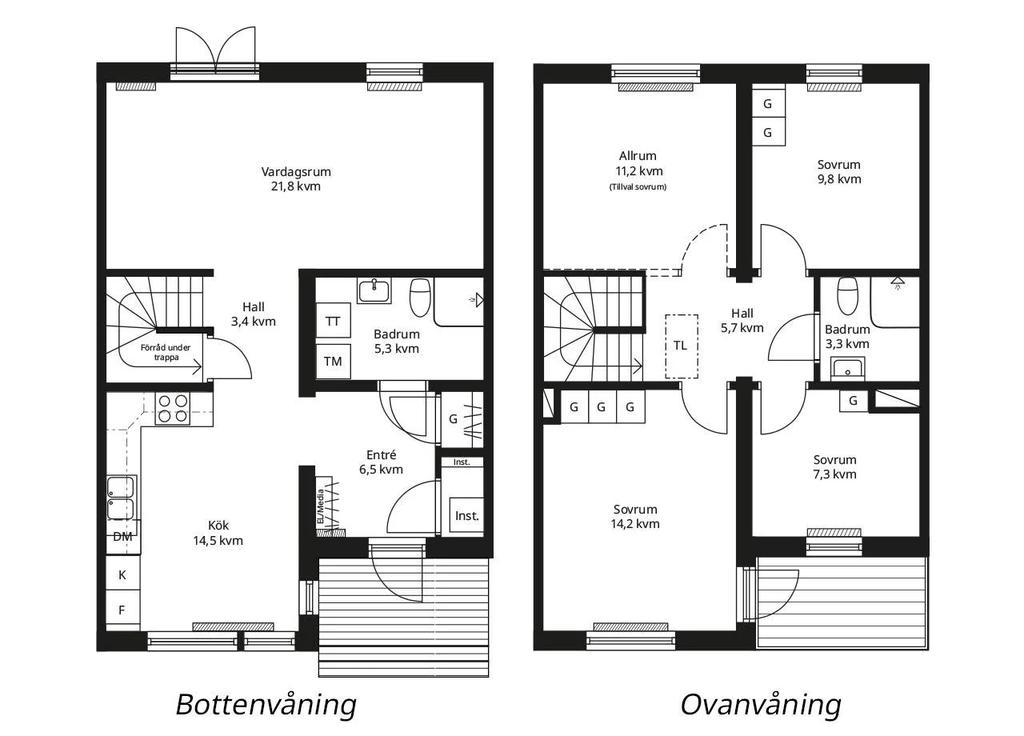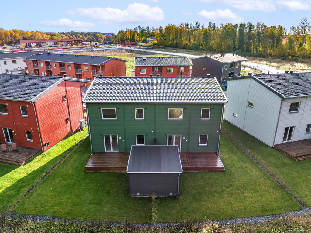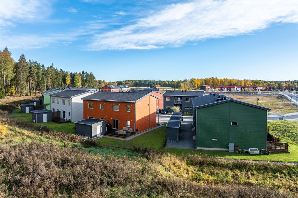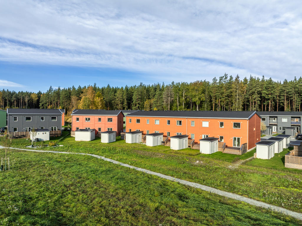 Förvaring är ofta en bristvara i nya bostäder. Inte här! Utöver de garderober som finns i sovrummen och förrådet under trappan så finns ytterligare ett förråd ute i trädgården. Det ska vara enkelt att kunna ha ordning och reda i sin bostad, och här finns alla förutsättningar.