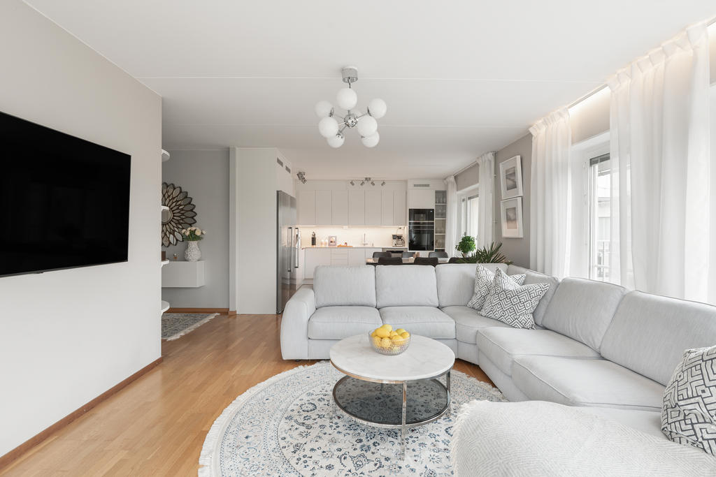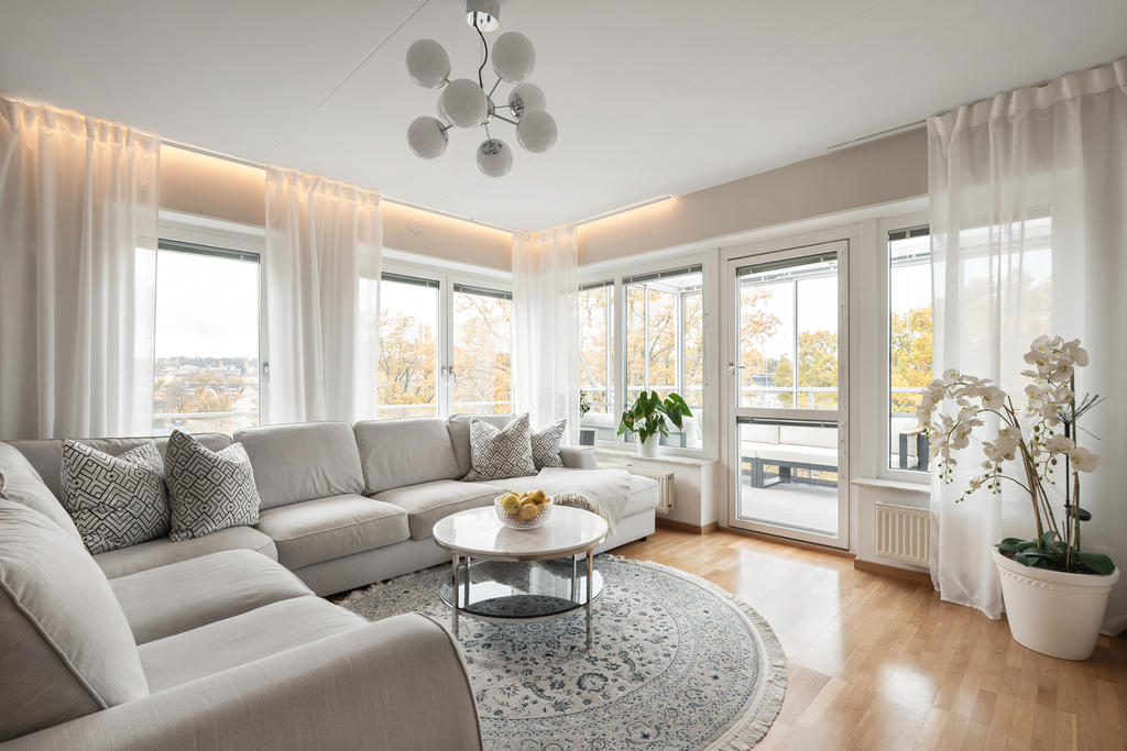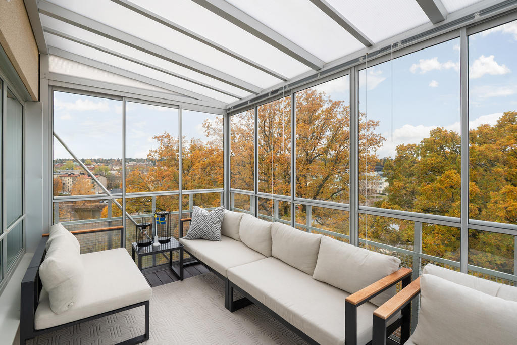 Ljus och modern 3:a högt upp med inglasad balkong och utsikt mot kanalen!