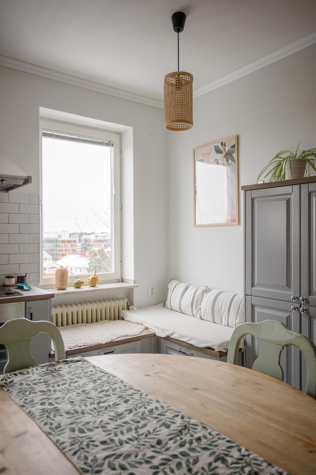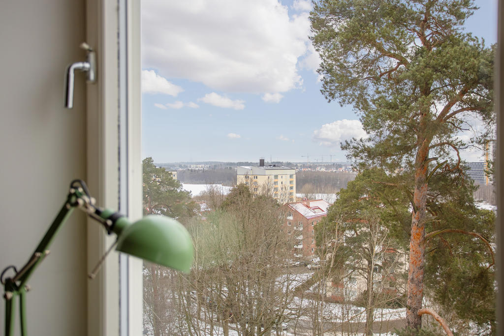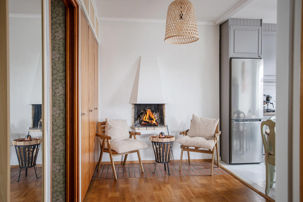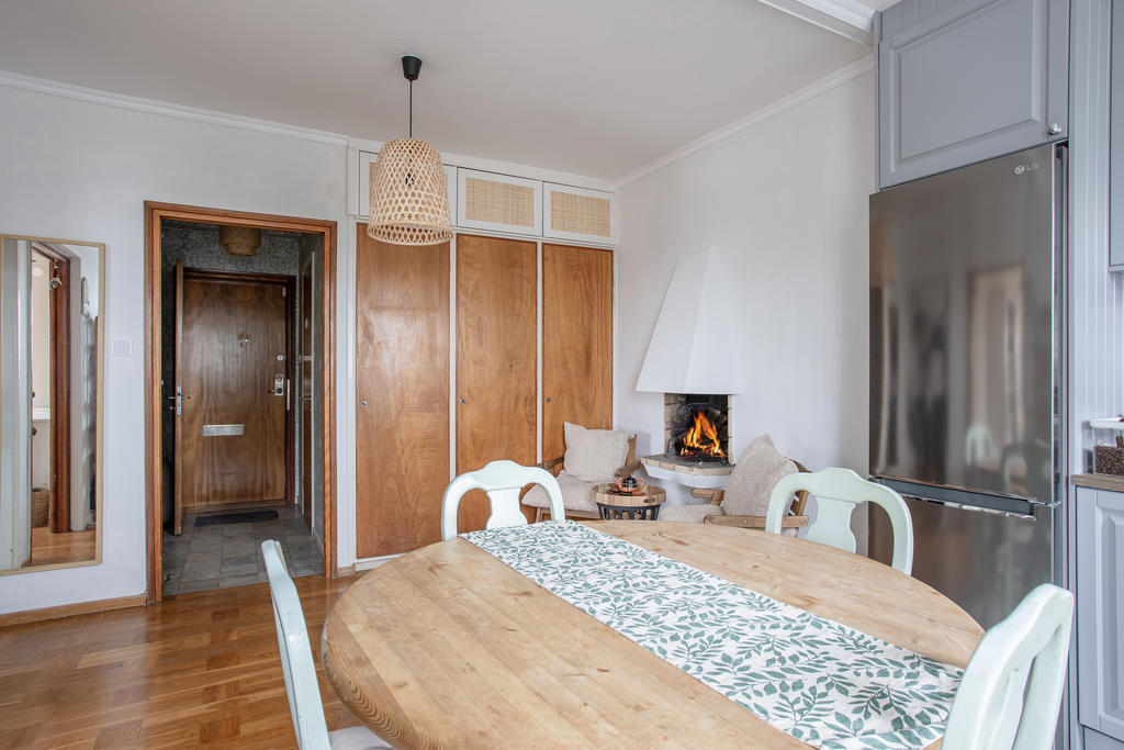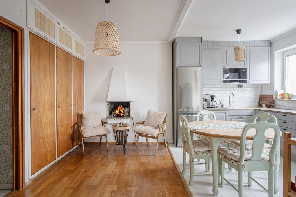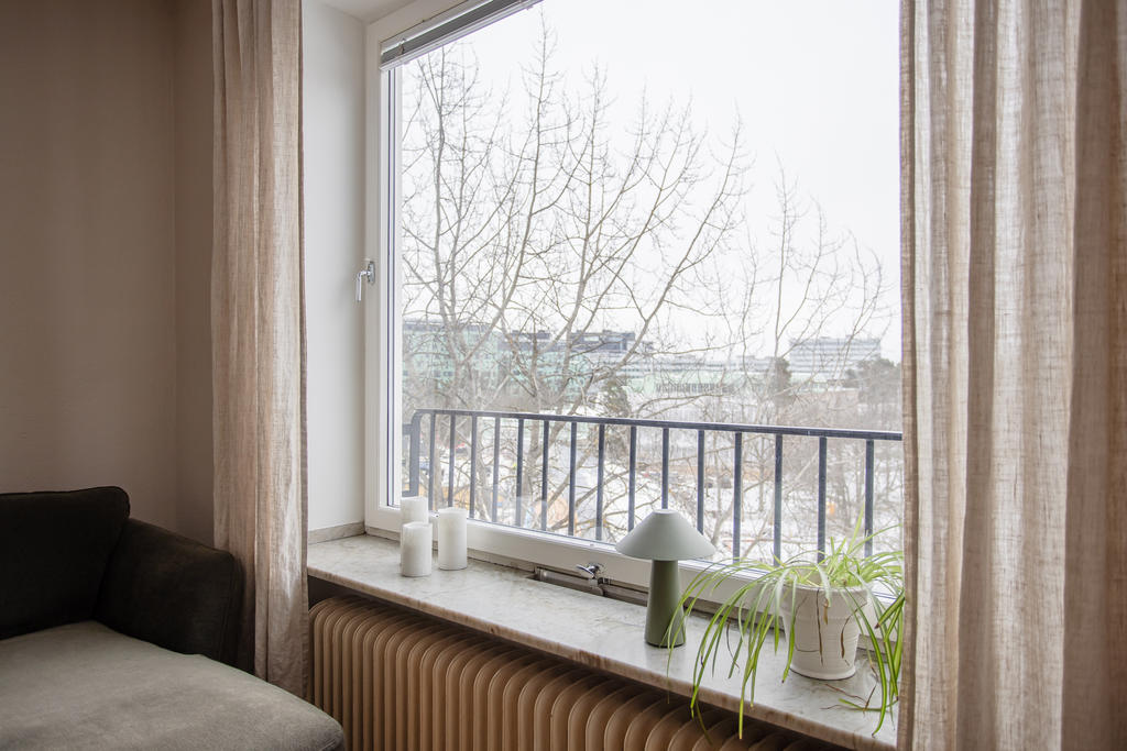 Högt belägen gavellägenhet med öppen spis och balkong