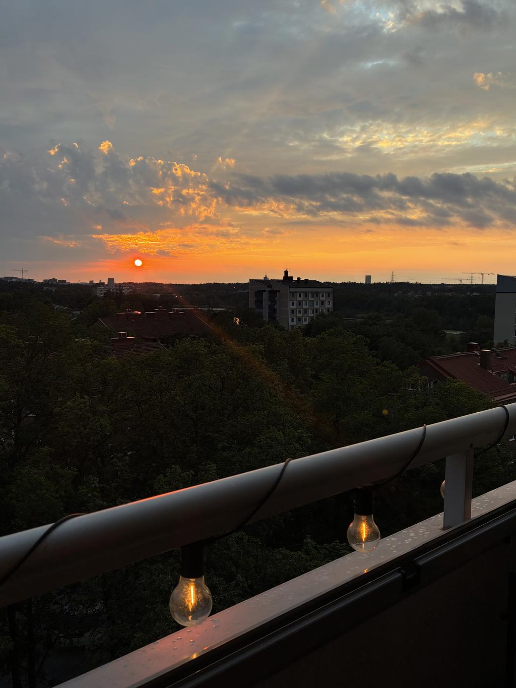 Milsvid vy ner mot Råstasjön, takåsarna i Råsunda och fantastiska solnedgångar.