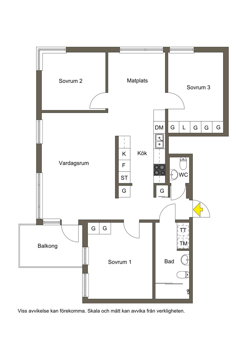 Bostaden disponerar tre sovrum, vilket ger stor flexibilitet.
