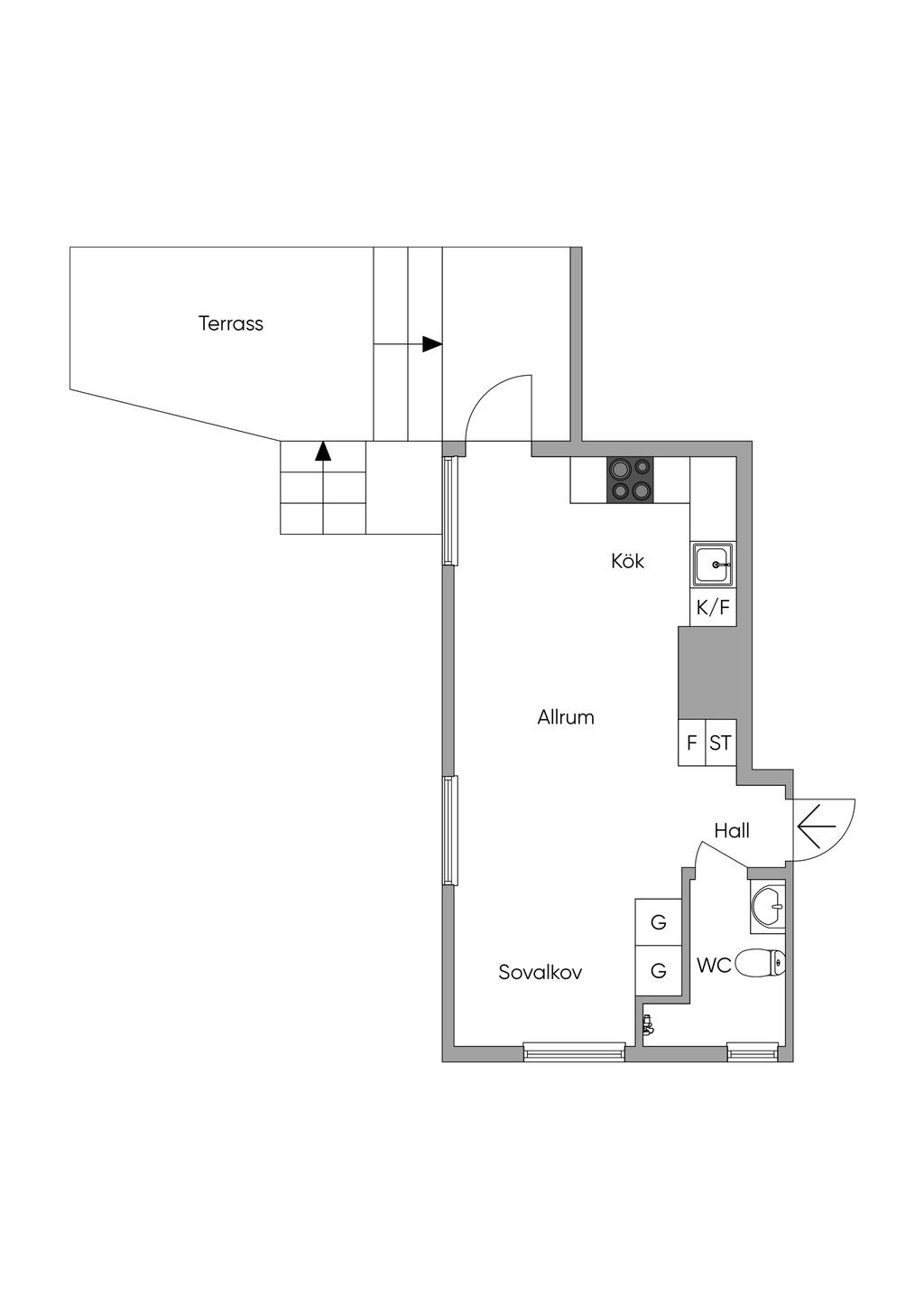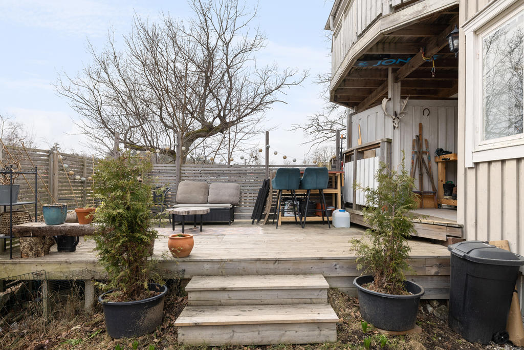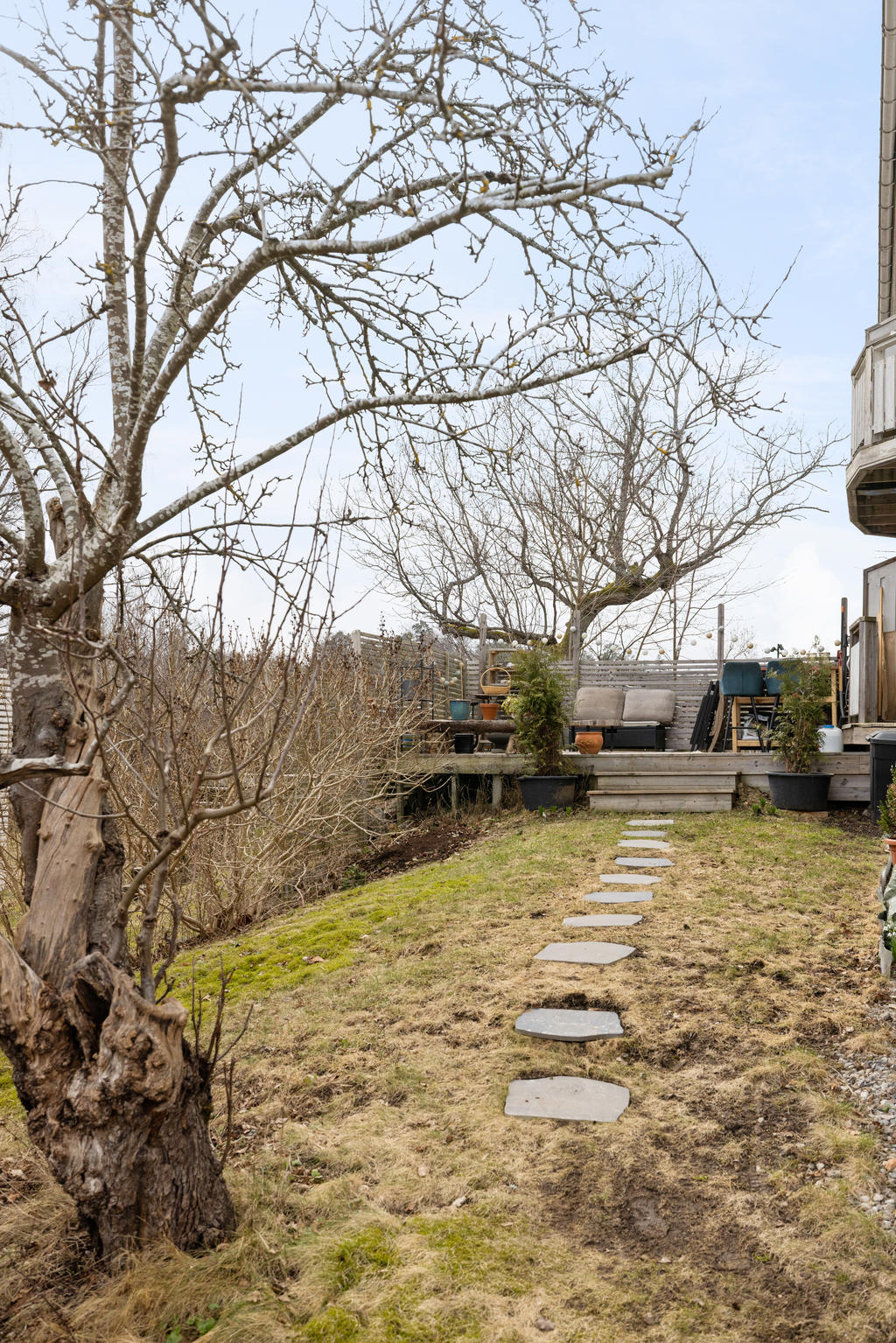 Ljus och välplanerad etta med uteplats och grönskande utsikt i lugnt villaområde!
