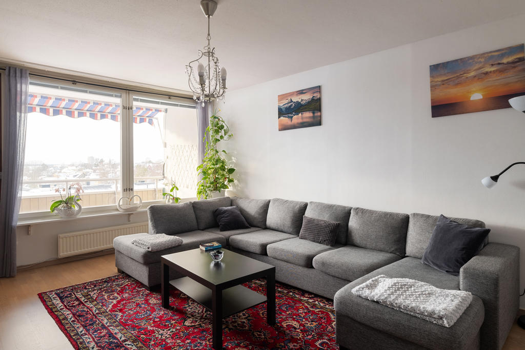 Ljus och rymlig lägenhet med balkong med milsvid utsikt!