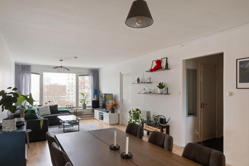 Med ett attraktivt och centralt läge endast cirka 300 meter från Farsta Centrum erbjuds nu en ljus och luftig trea med inglasad balkong och stambytt badrum – ett hem som kombinerar rymd, funktion och trivsel på bästa sätt. Lägenheten präglas av genomgående rymliga rum, vitlaserad askparkett och stora fönsterpartier som ger ett generöst ljusinsläpp och en härlig känsla av rymd.