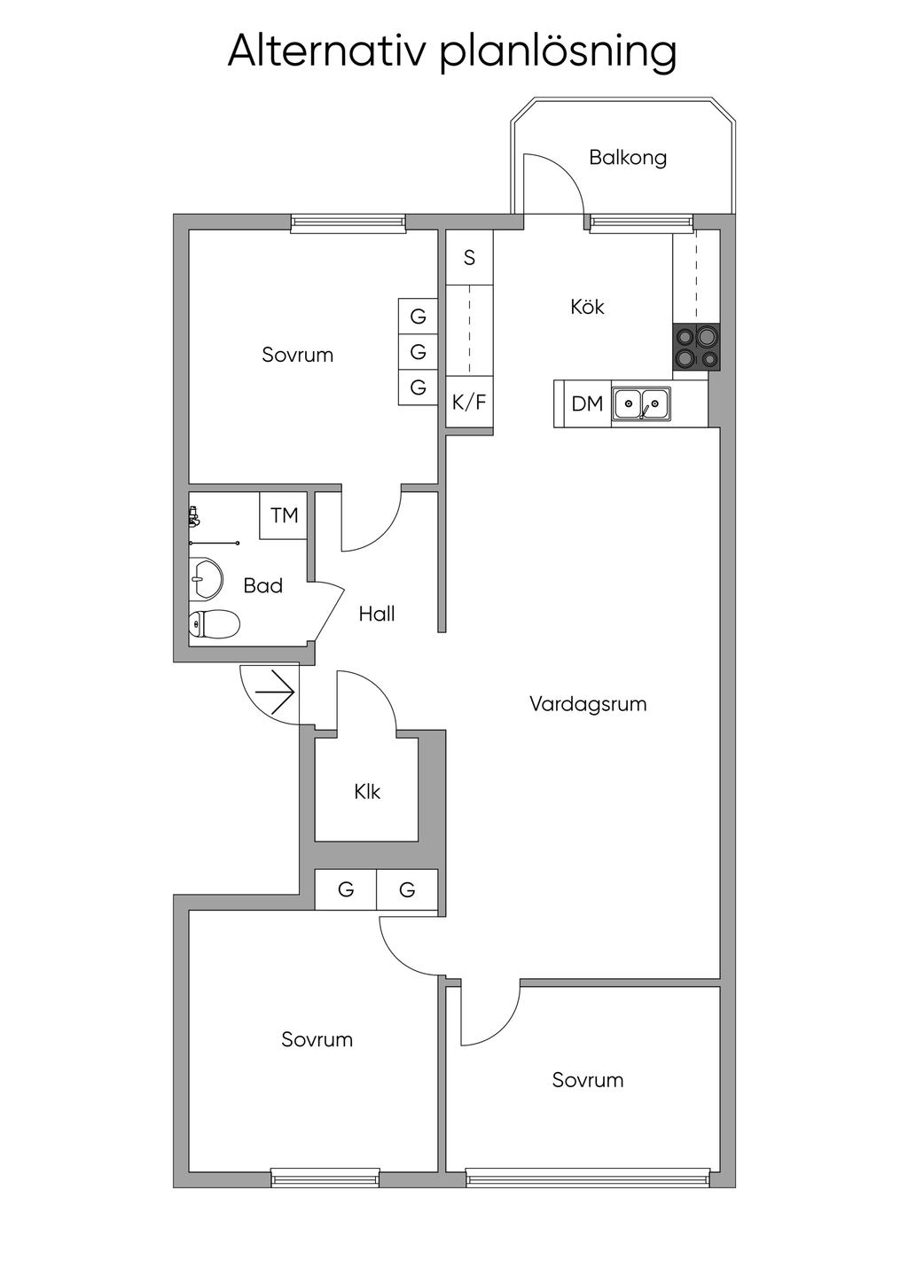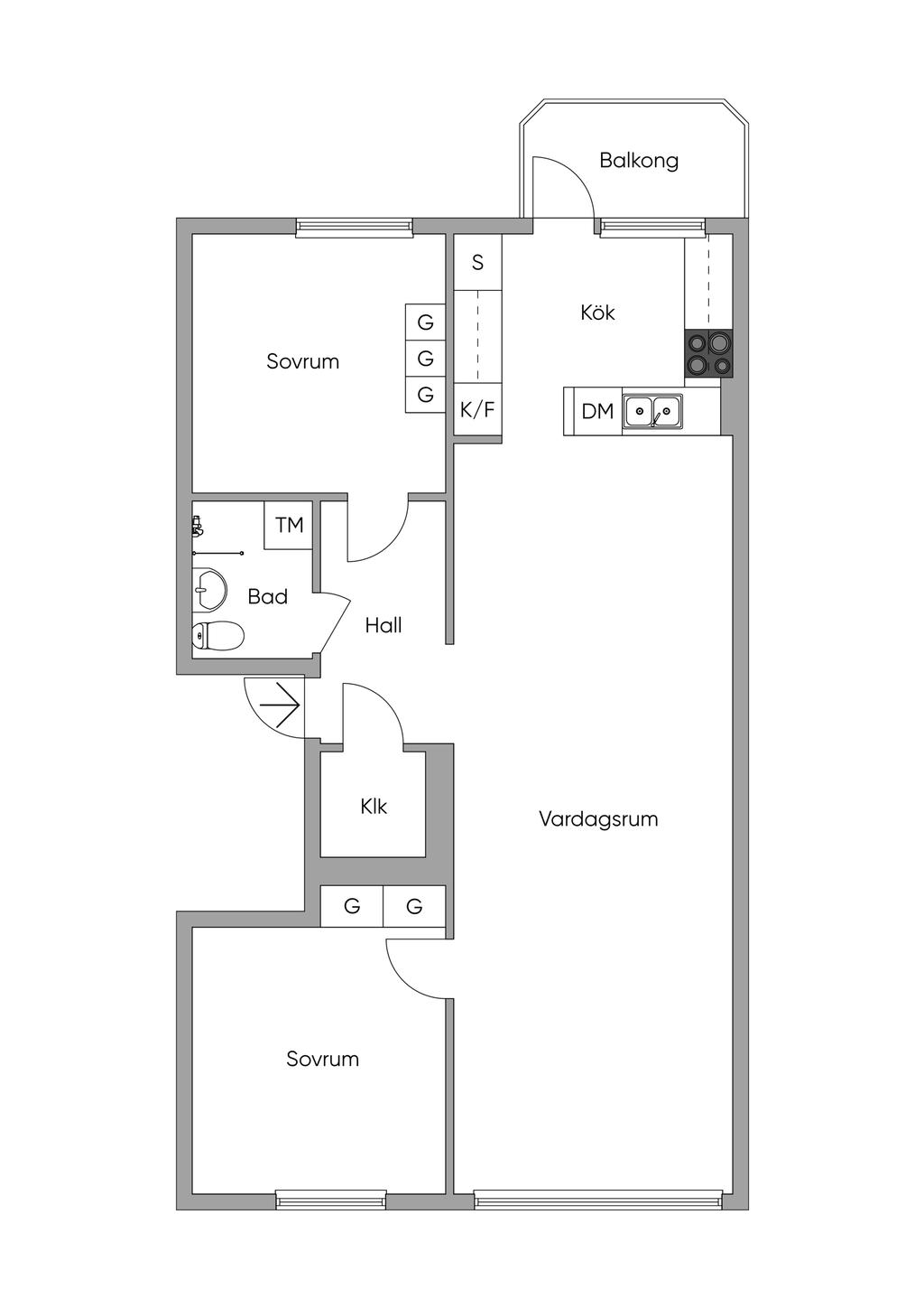 Lägenheten erbjuder två generösa sovrum, båda med plats för dubbelsäng. Det ena ligger i anslutning till hallen och har två dubbelgarderober, medan det andra nås från vardagsrummet och har tre inbyggda garderober som ger utmärkta förvaringsmöjligheter. De ljusa tapeterna och den genomgående askparketten skapar en harmonisk och enhetlig känsla även här.