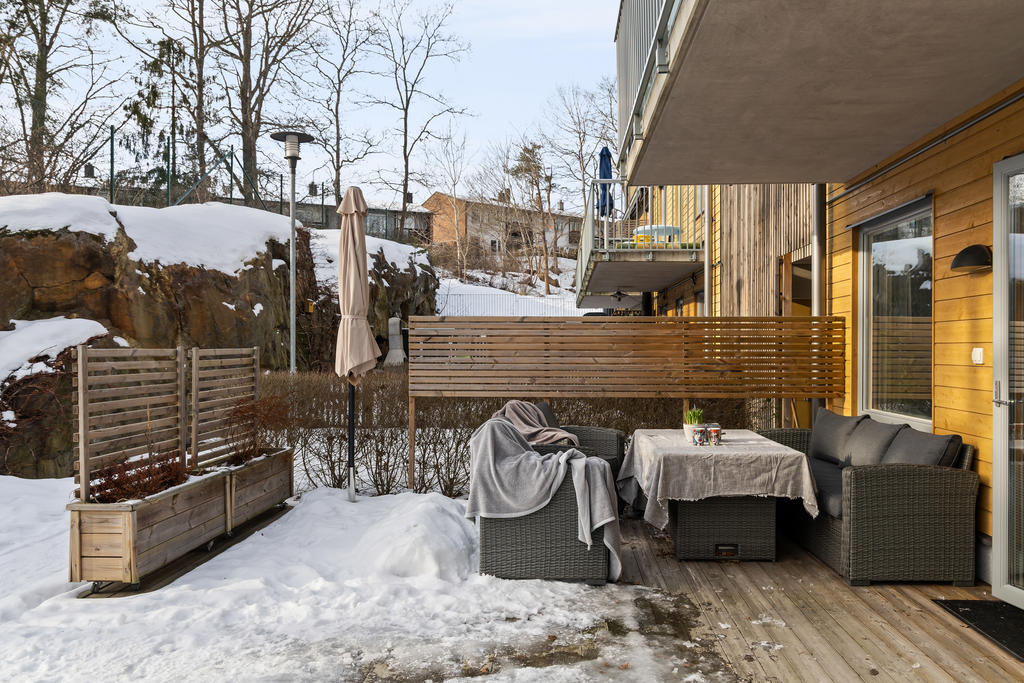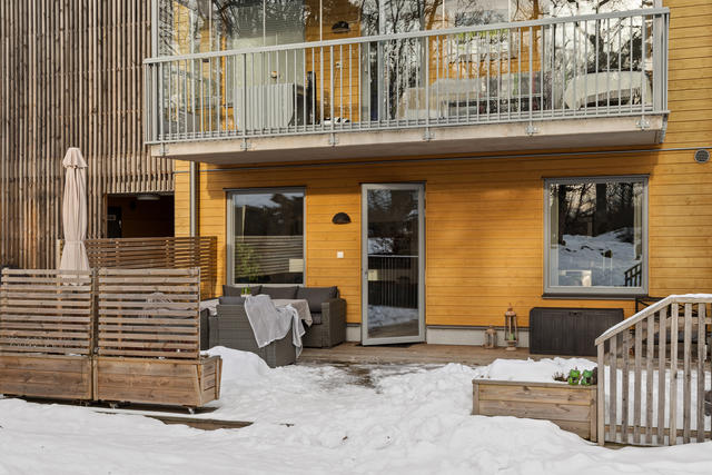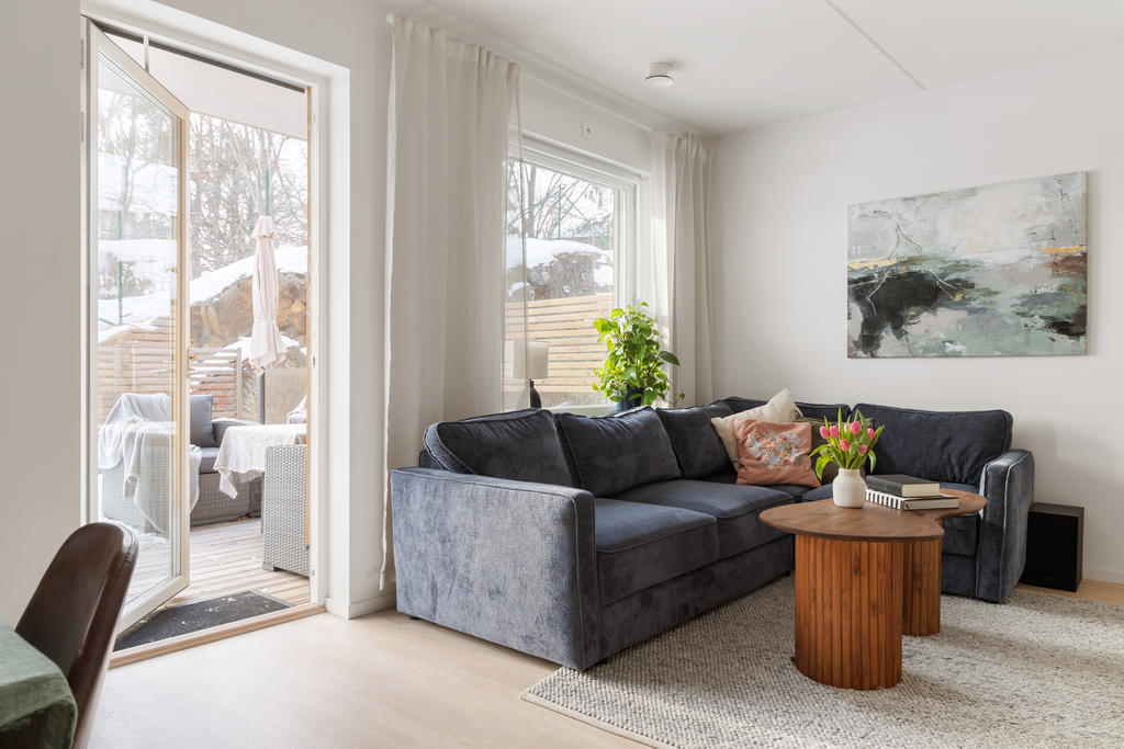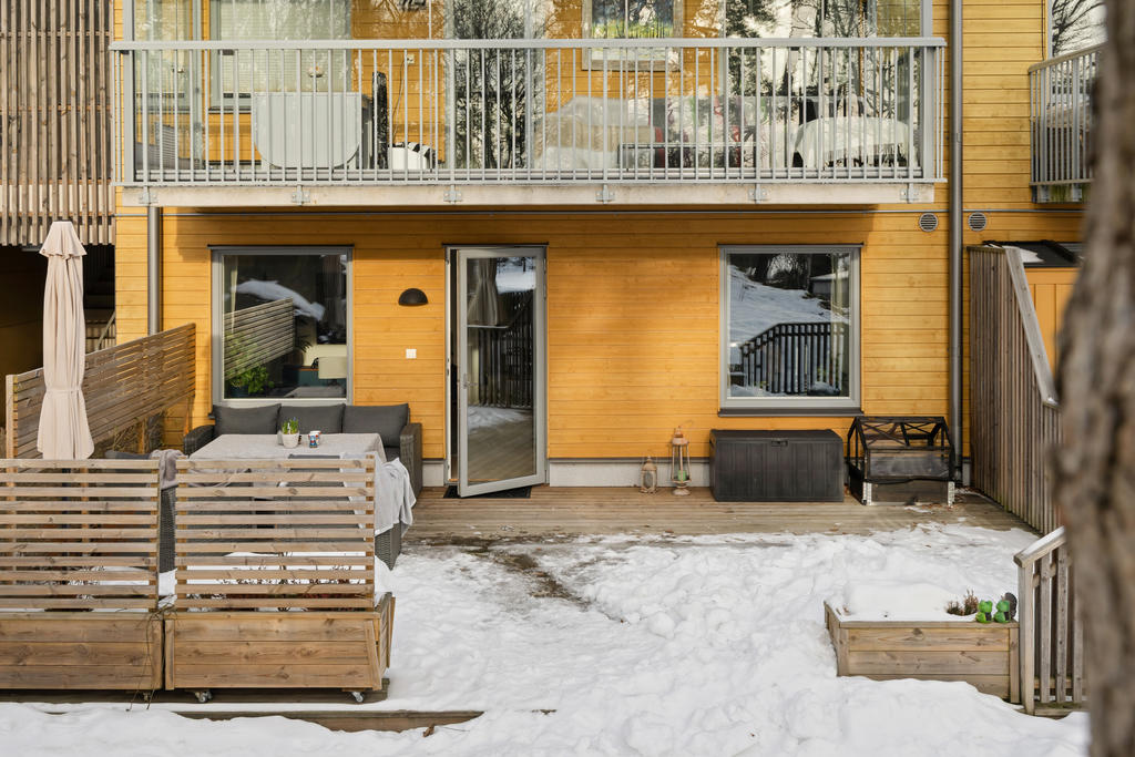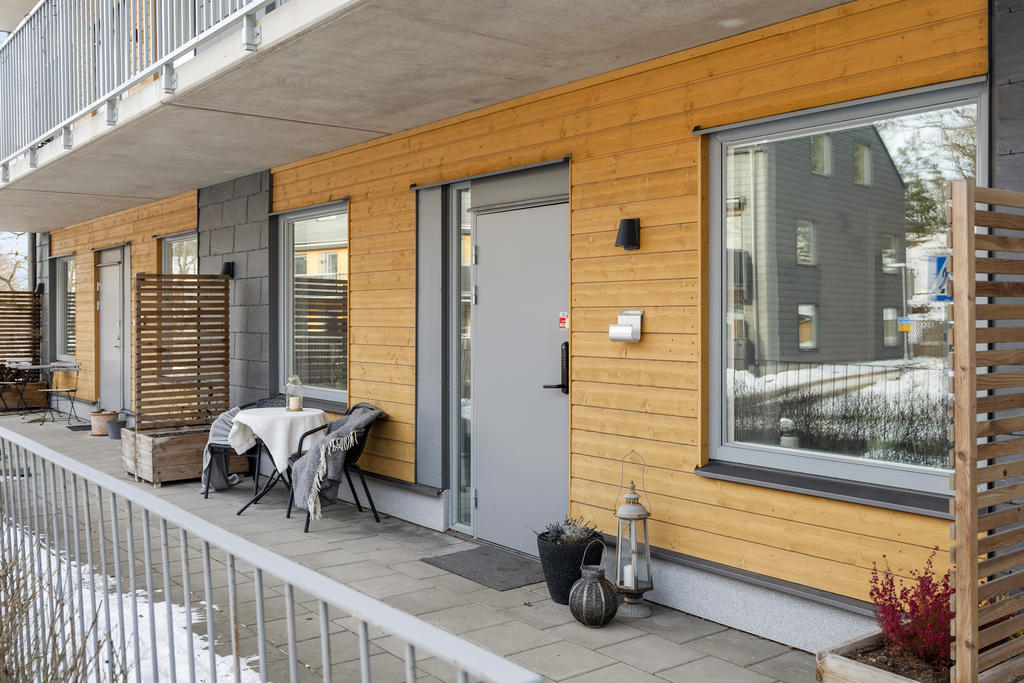 Modern lägenhet med radhuskänsla och stor uteplats!
