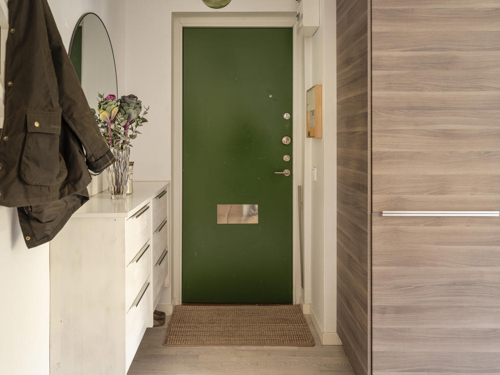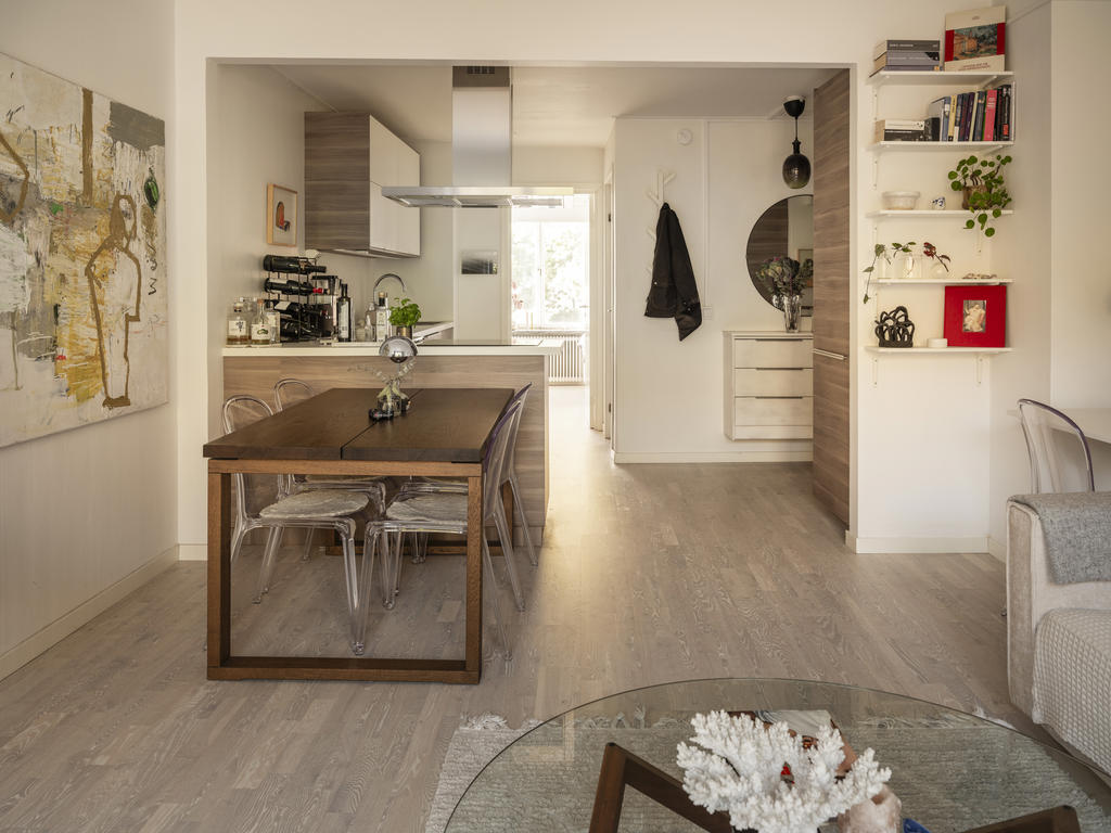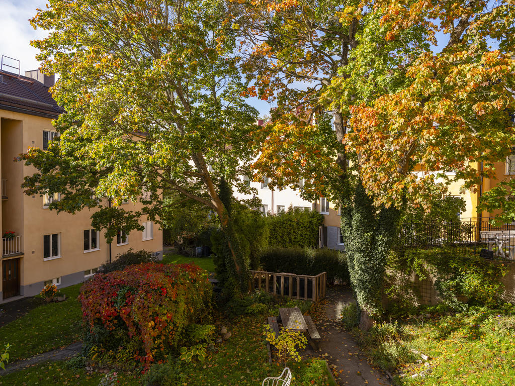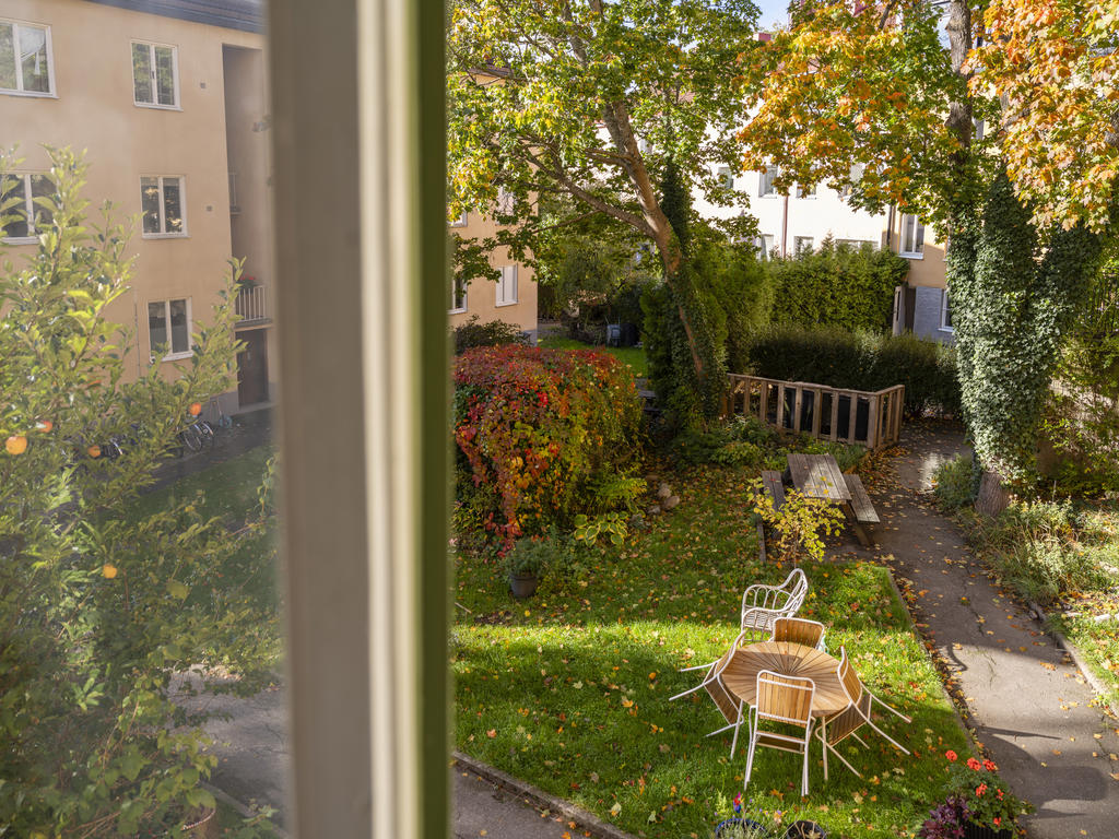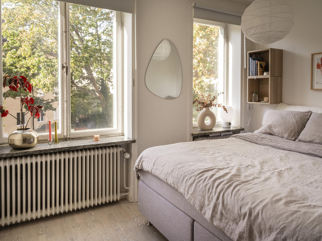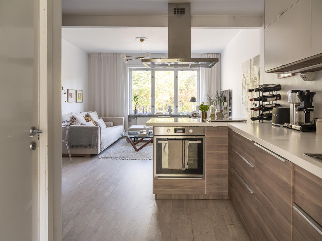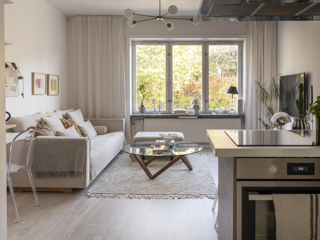 Modern tvåa med härlig rymd och vacker grönska utanför fönstren