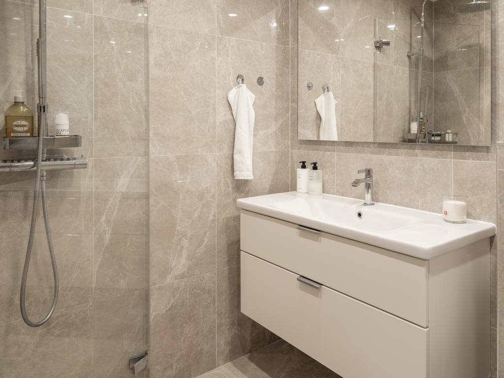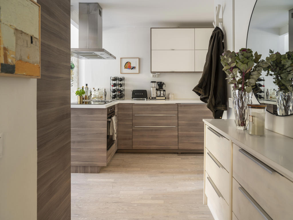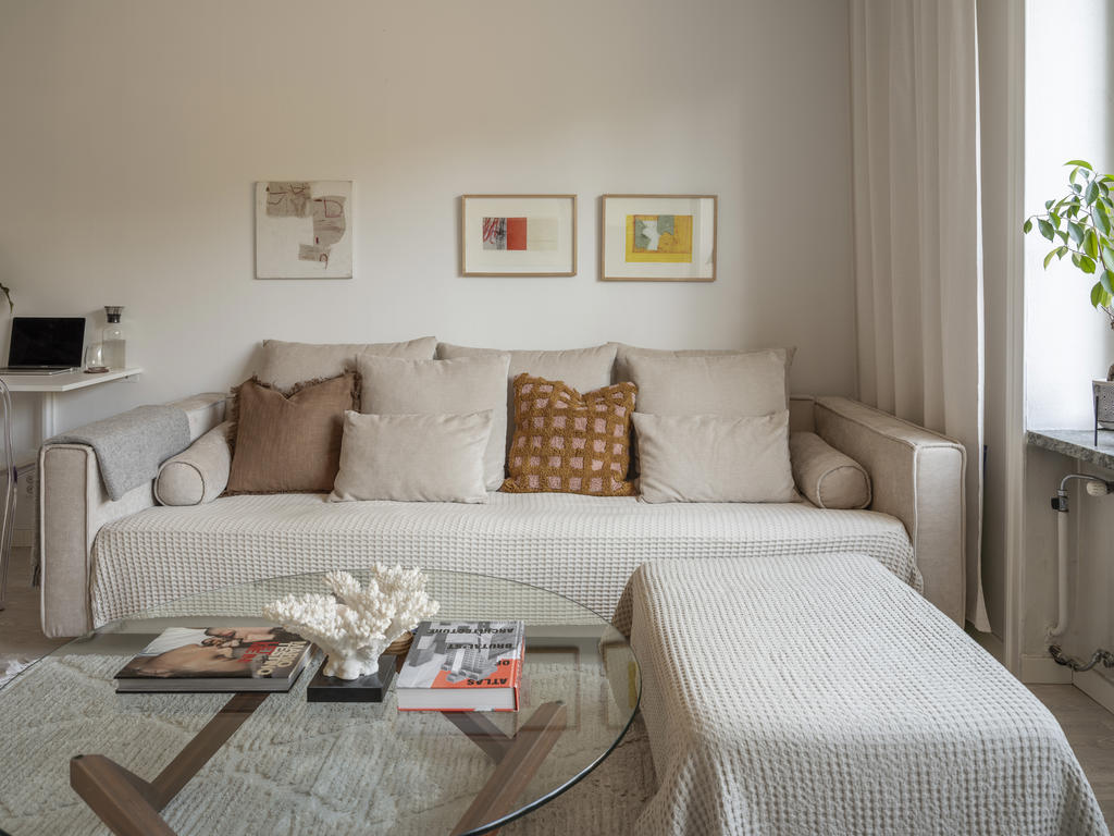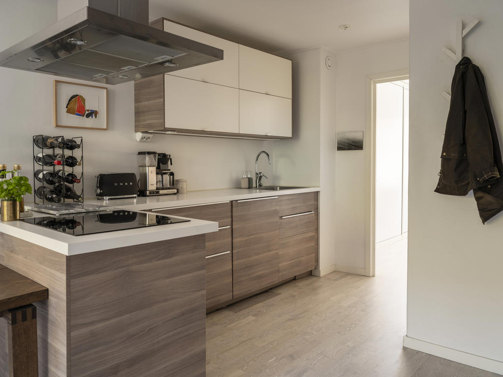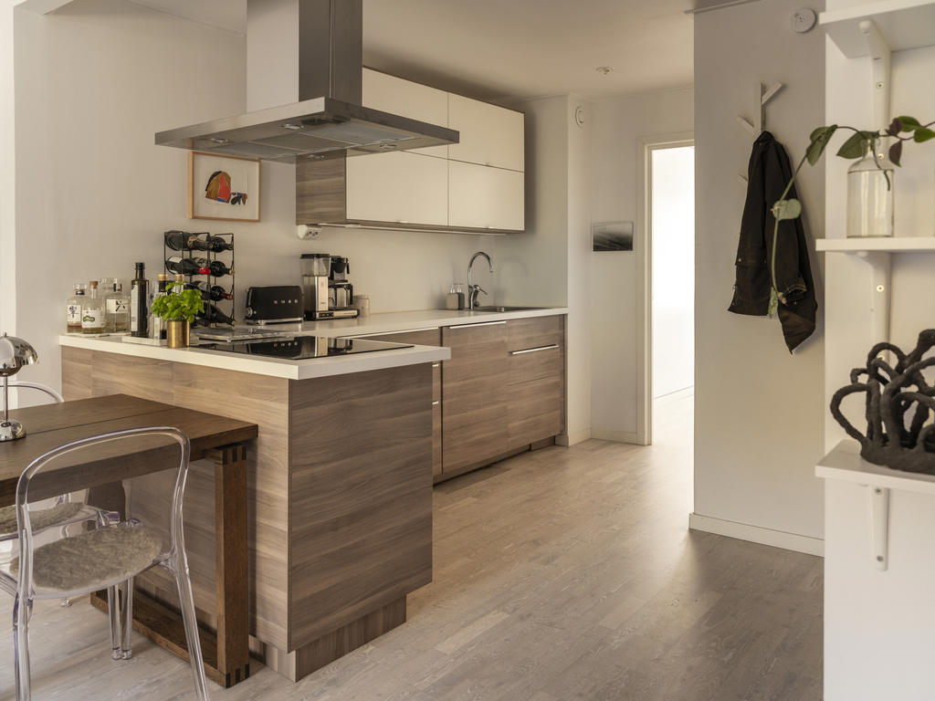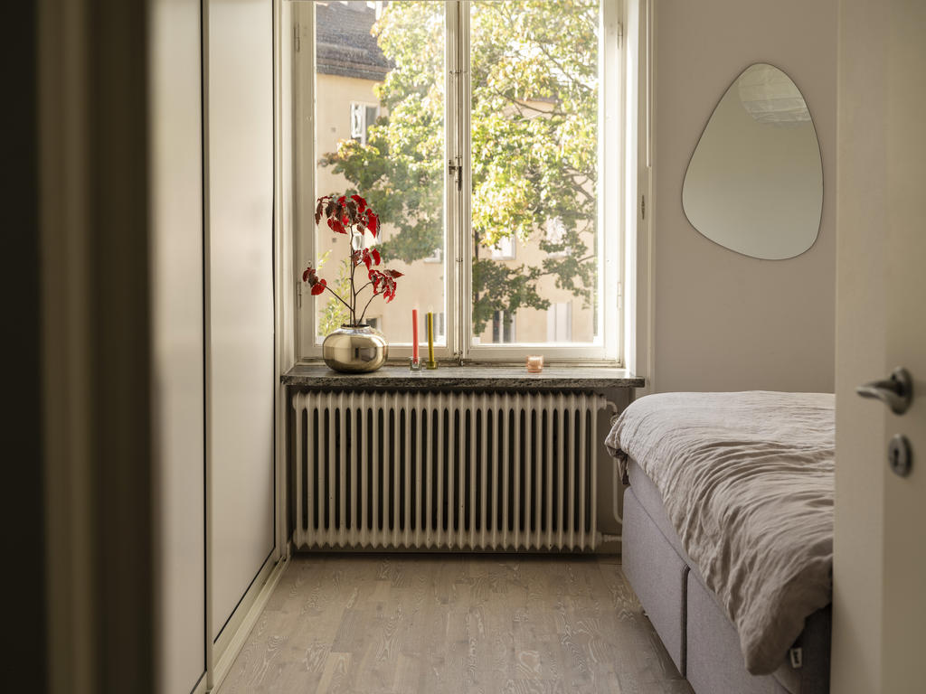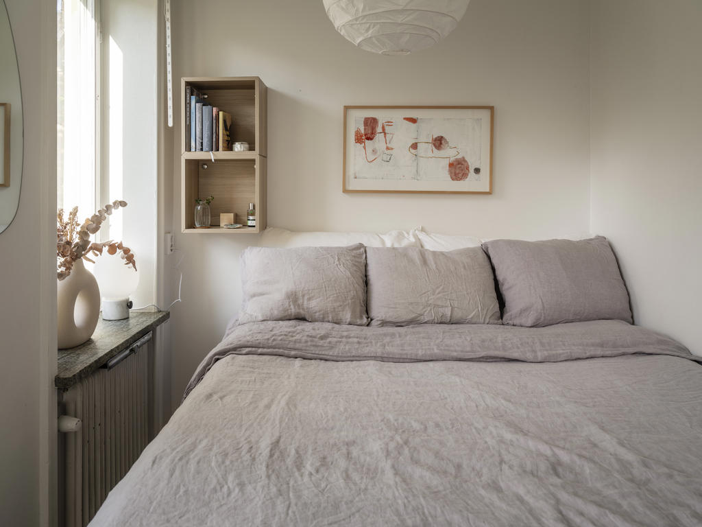 Modern tvåa med härlig rymd och vacker grönska utanför fönstren