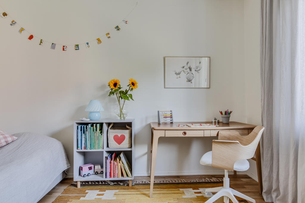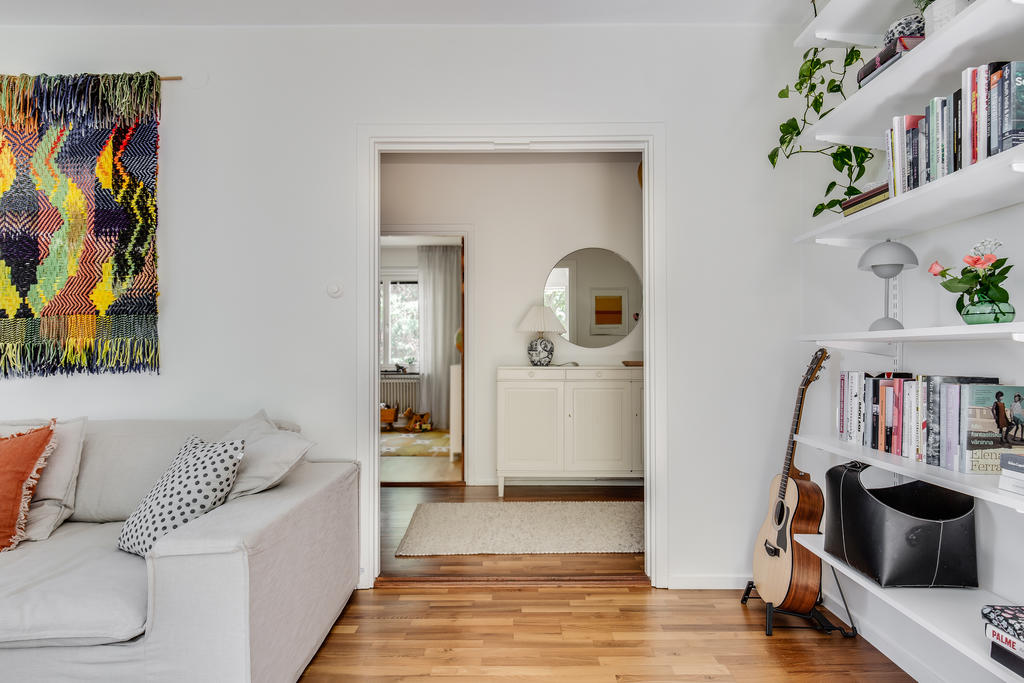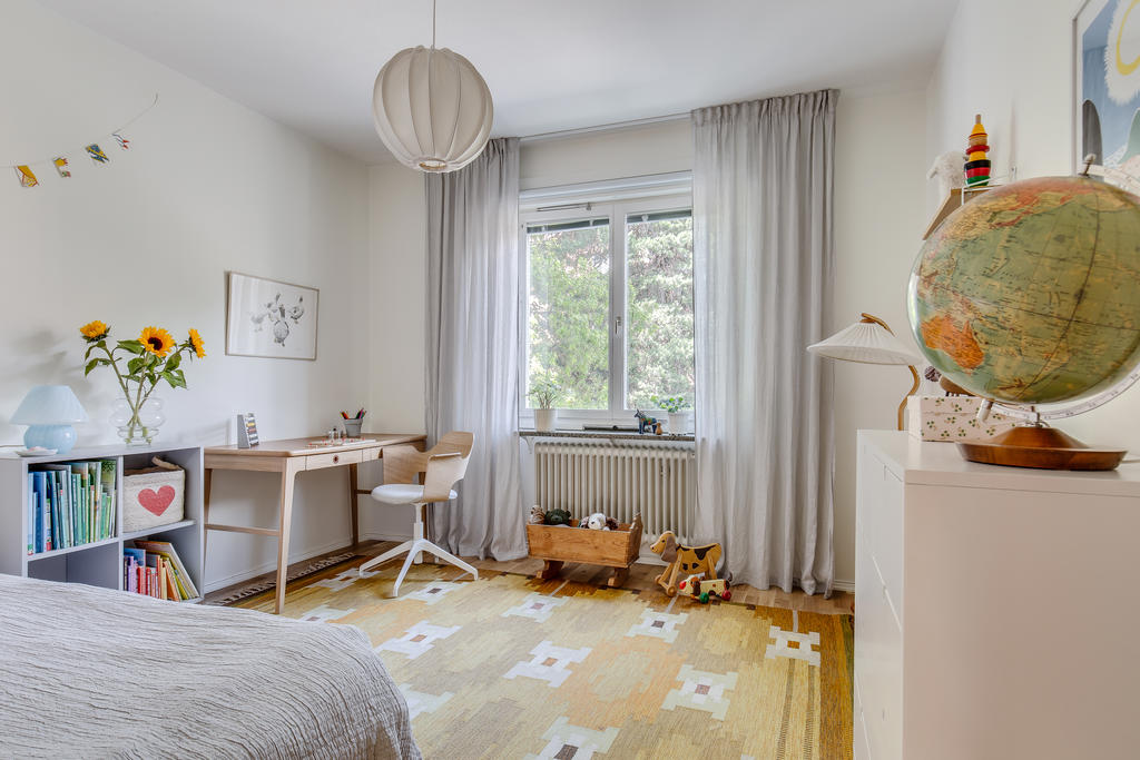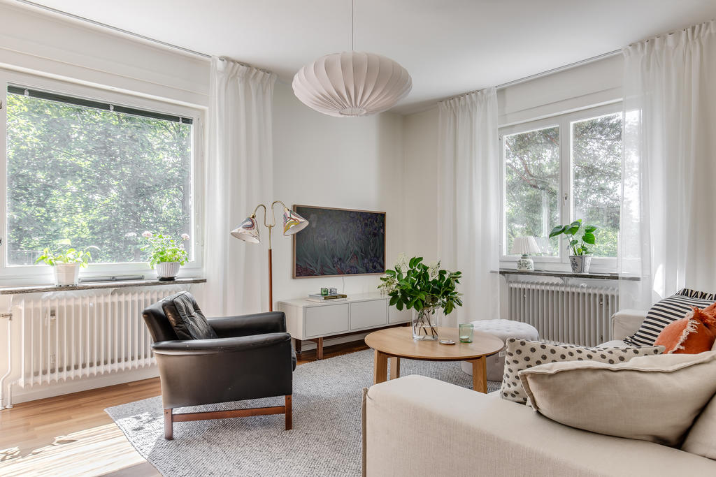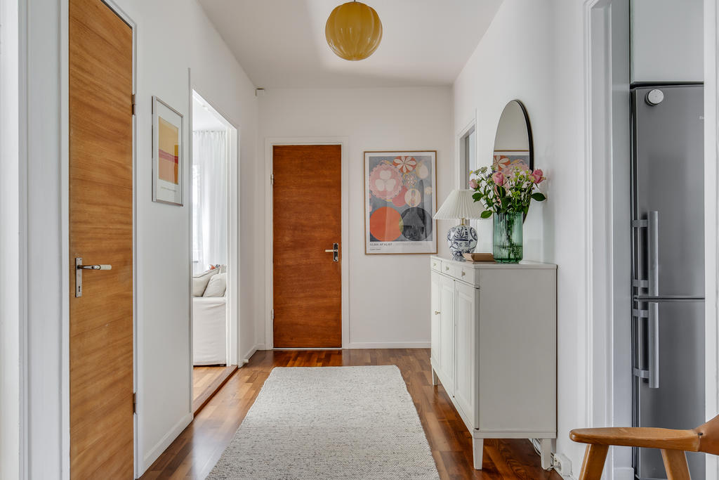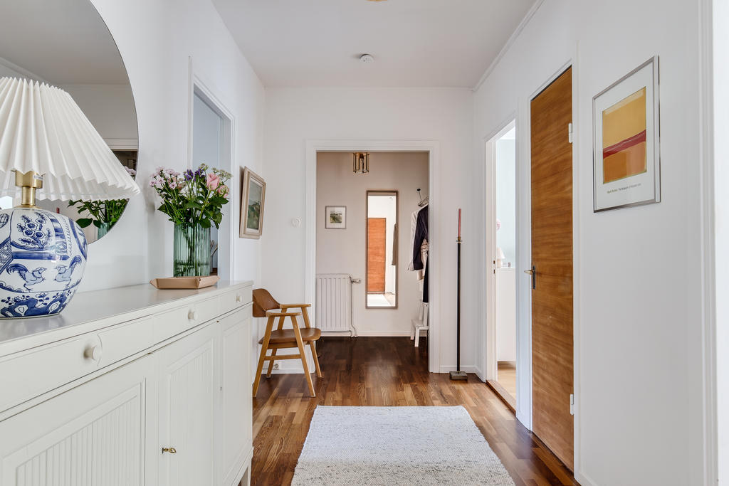 Rymlig gaveltrea med lugnt, mycket barnvänligt läge. Stilfullt renoverad med genomgående fräscha ytskikt. Stort, härligt vardagsrum i gavel med fönster i två väderstreck, härligt kök med matplats för 6–7 personer samt två bra, stora sovrum. Riktigt bra förvaringslösningar med bl.a. platsbyggda originalgarderober samt bra avhängningsyta i hall. Helkaklat badrum med badkar och tvättmaskin.
