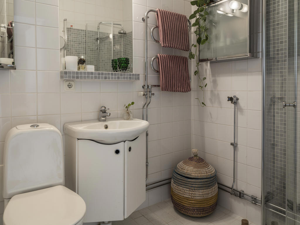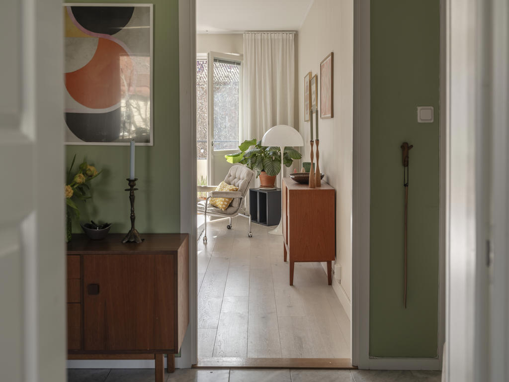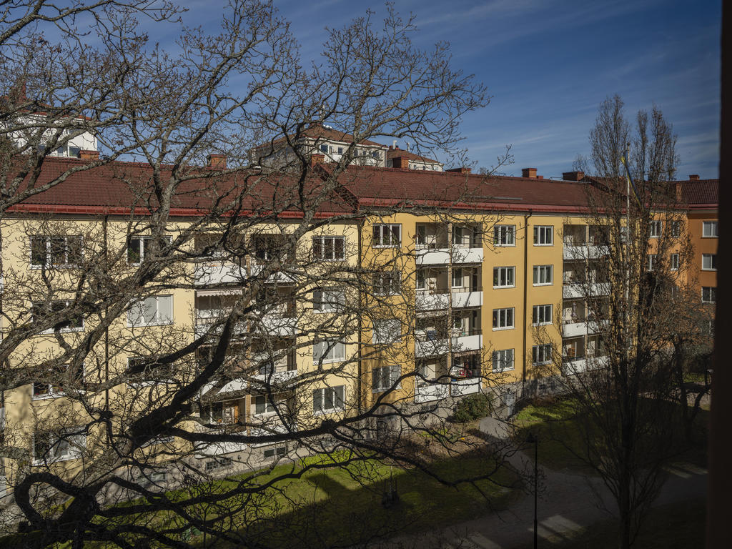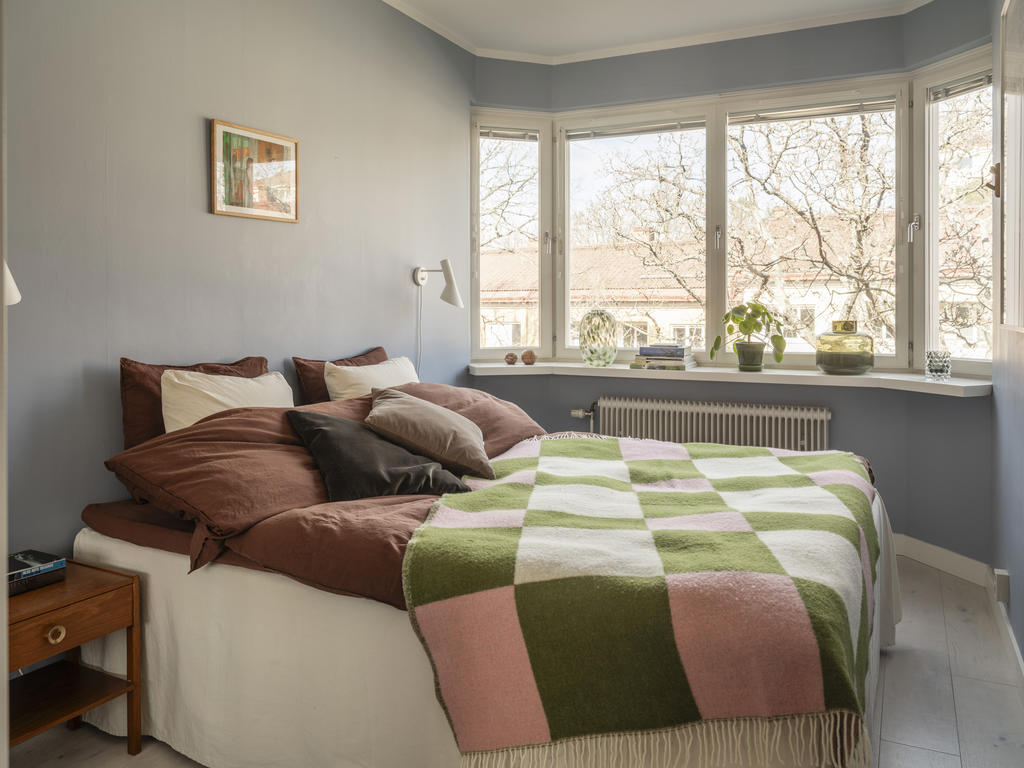 Sovrummet är rofyllt och tyst beläget mot innergården, med lugna färgval och plats för dubbelsäng samt praktisk förvaring via garderobsvägg. Badrummet är stilrent och funktionellt med dusch, handfat, WC och goda förvaringsmöjligheter. Ljus kakelsättning som bidrar till en tidlös helhet. Genomgående präglas bostaden av fina detaljer, en harmonisk färgskala och smart disponerade ytor som skapar ett hem där varje kvadratmeter verkligen kommer till sin rätt.