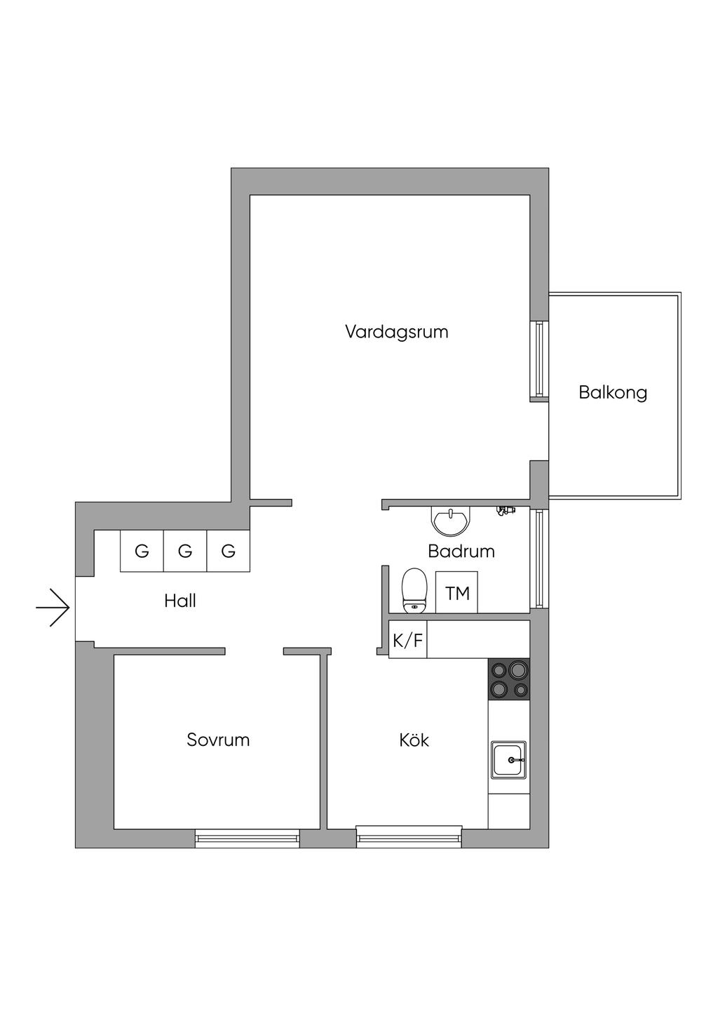 Stilfull tvåa med solig balkong och genomtänkt planlösning