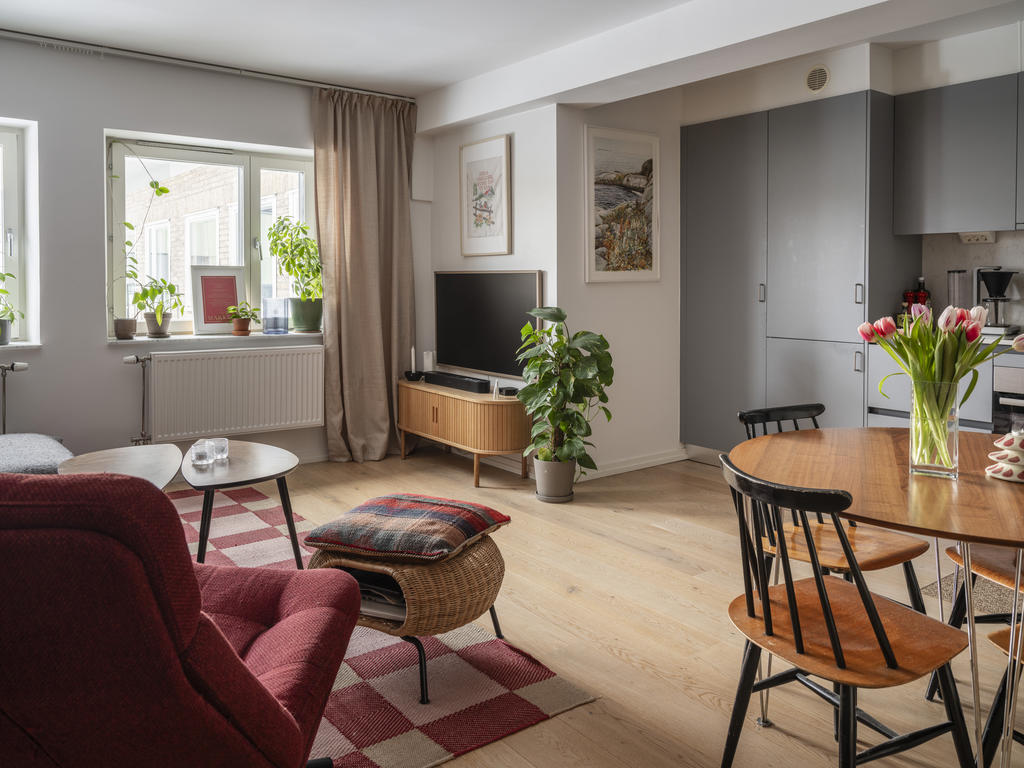 Ljus, modern tvåa med social planlösning