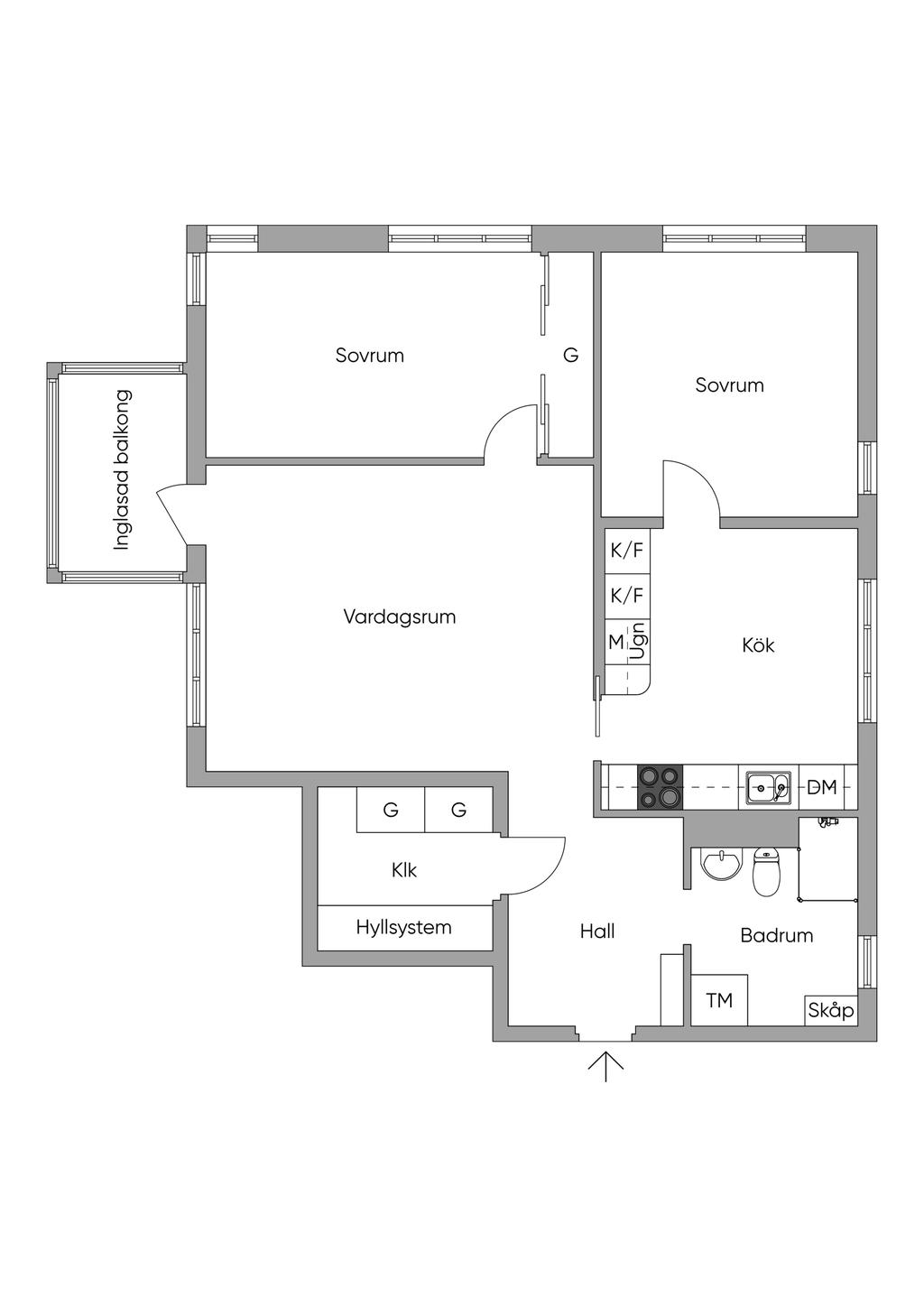 Välplanerad 3 rok om ca 84 kvm högt upp i huset med balkong i soligt läge