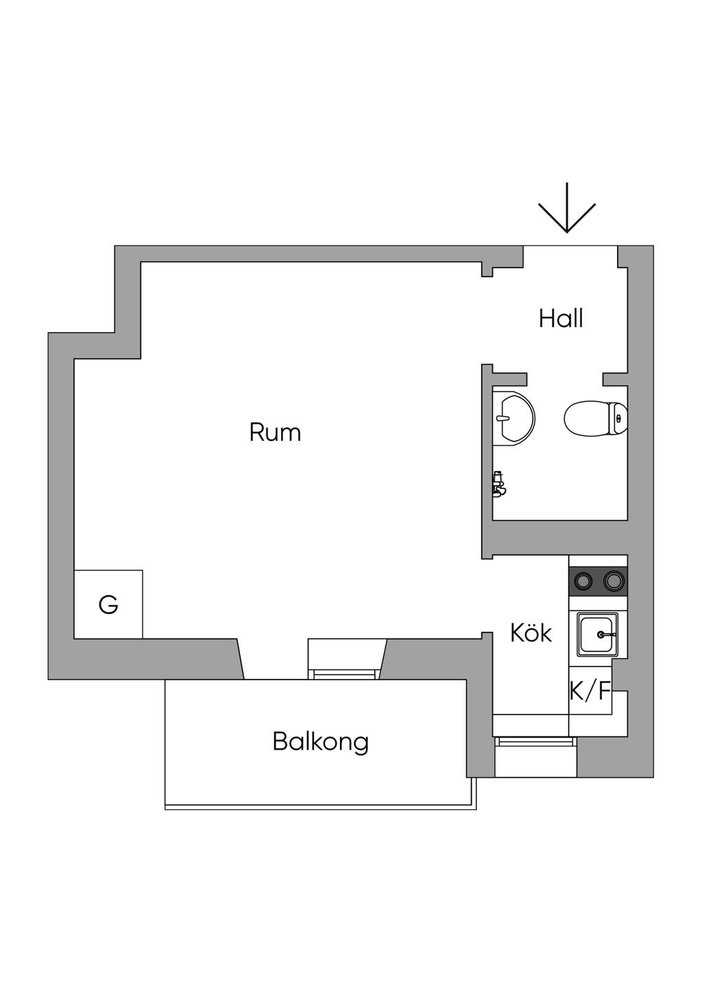 Snygg och yteffektiv Kransen-1:a med balkong!